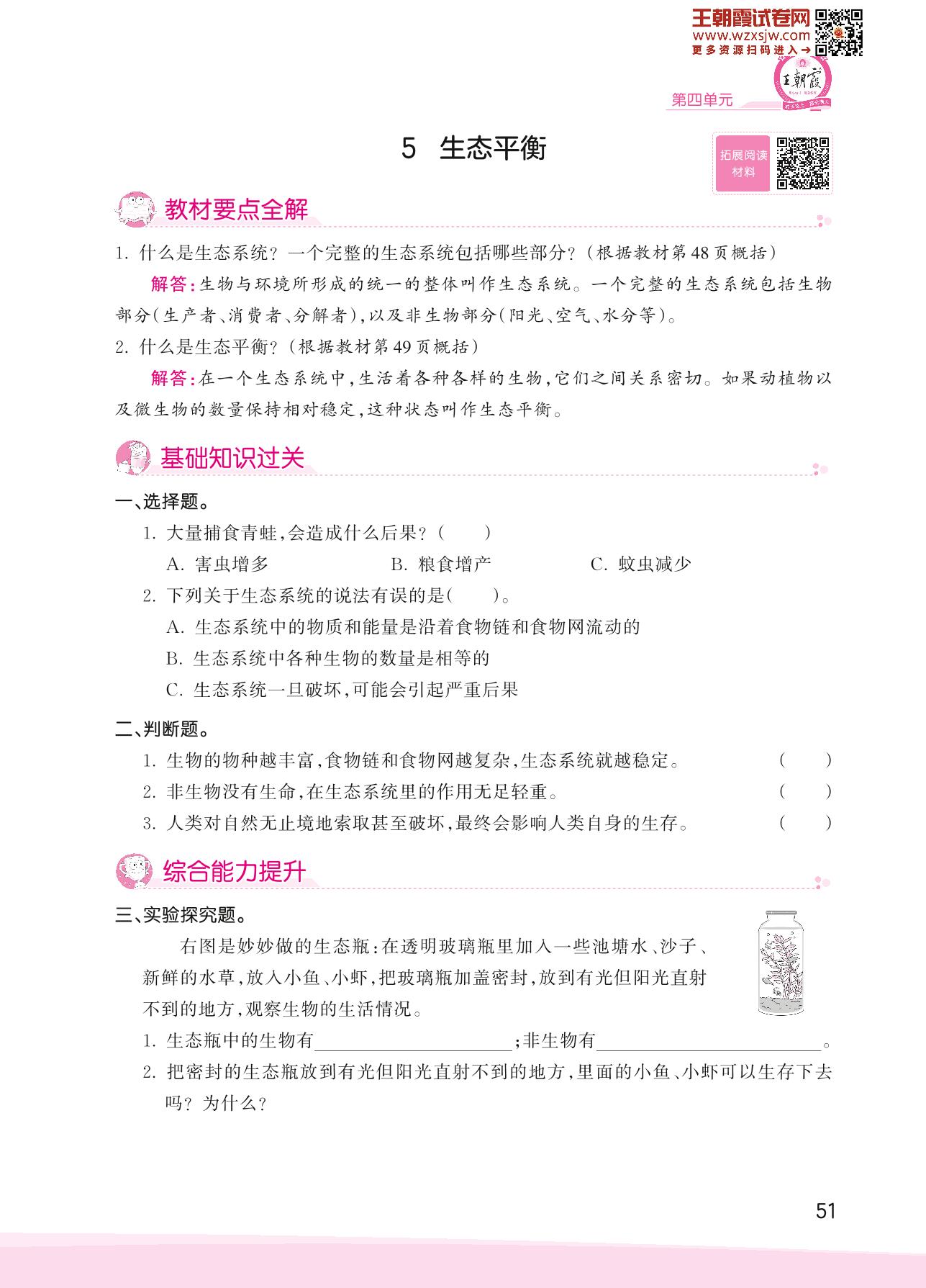 2023下册五年级科学大象版 第四单元 食物与能量——5 生态平衡