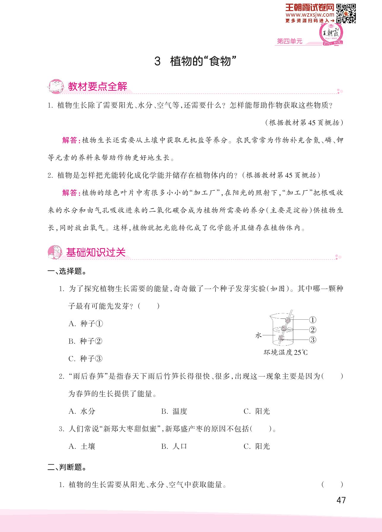 2023下册五年级科学大象版 第四单元 食物与能量——3 植物的“食物”