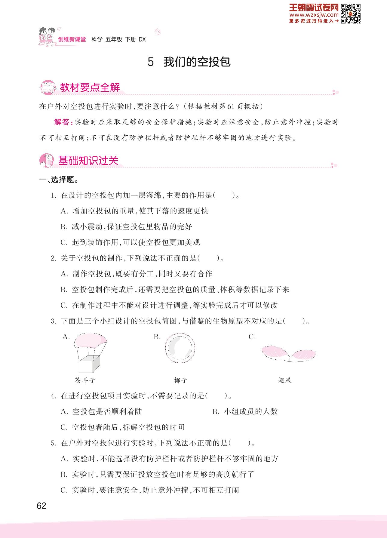 2023下册五年级科学大象版 第五单元 大自然里的老师——5 我们的空投包