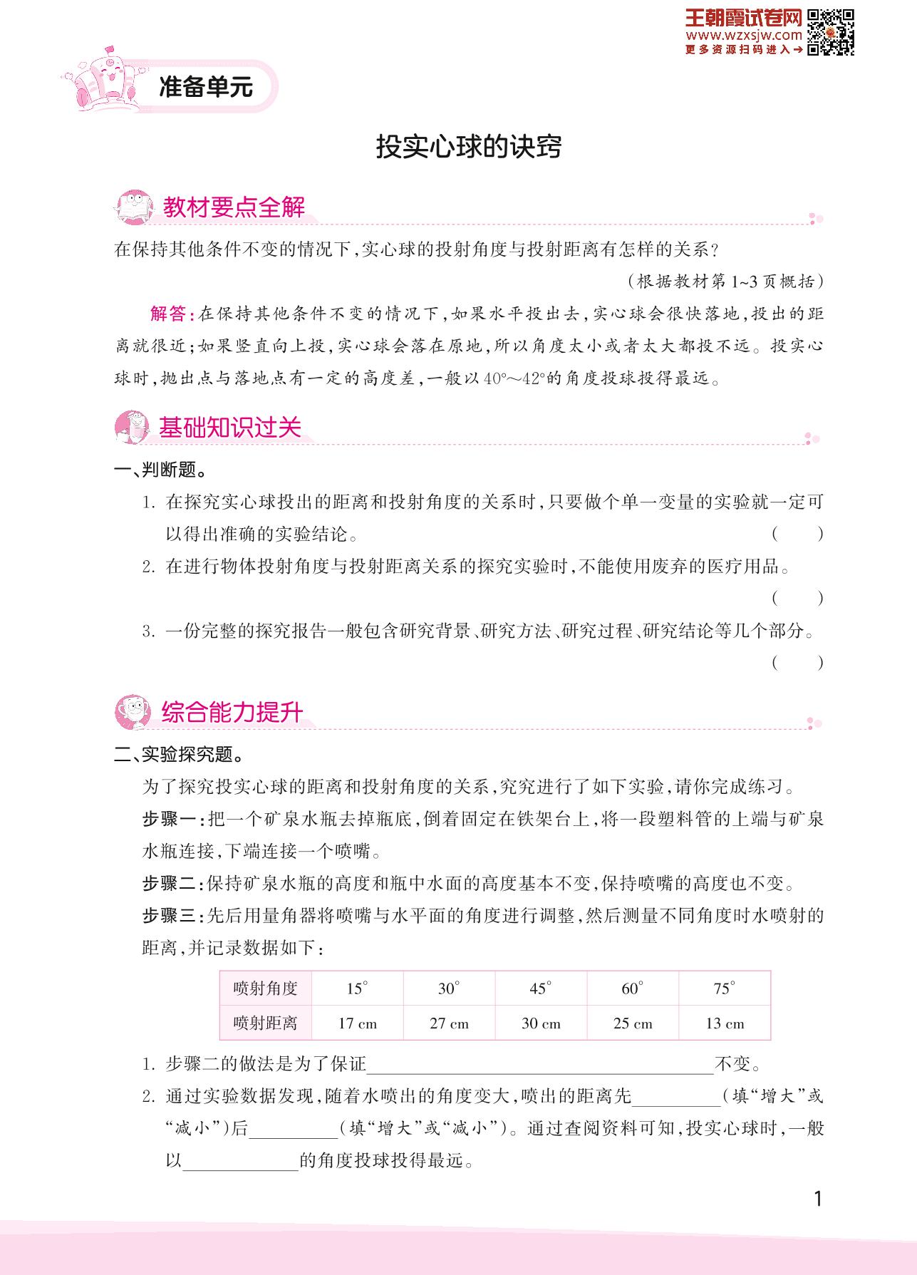 2023下册六年级科学大象版 准备单元——投实心球的诀窍