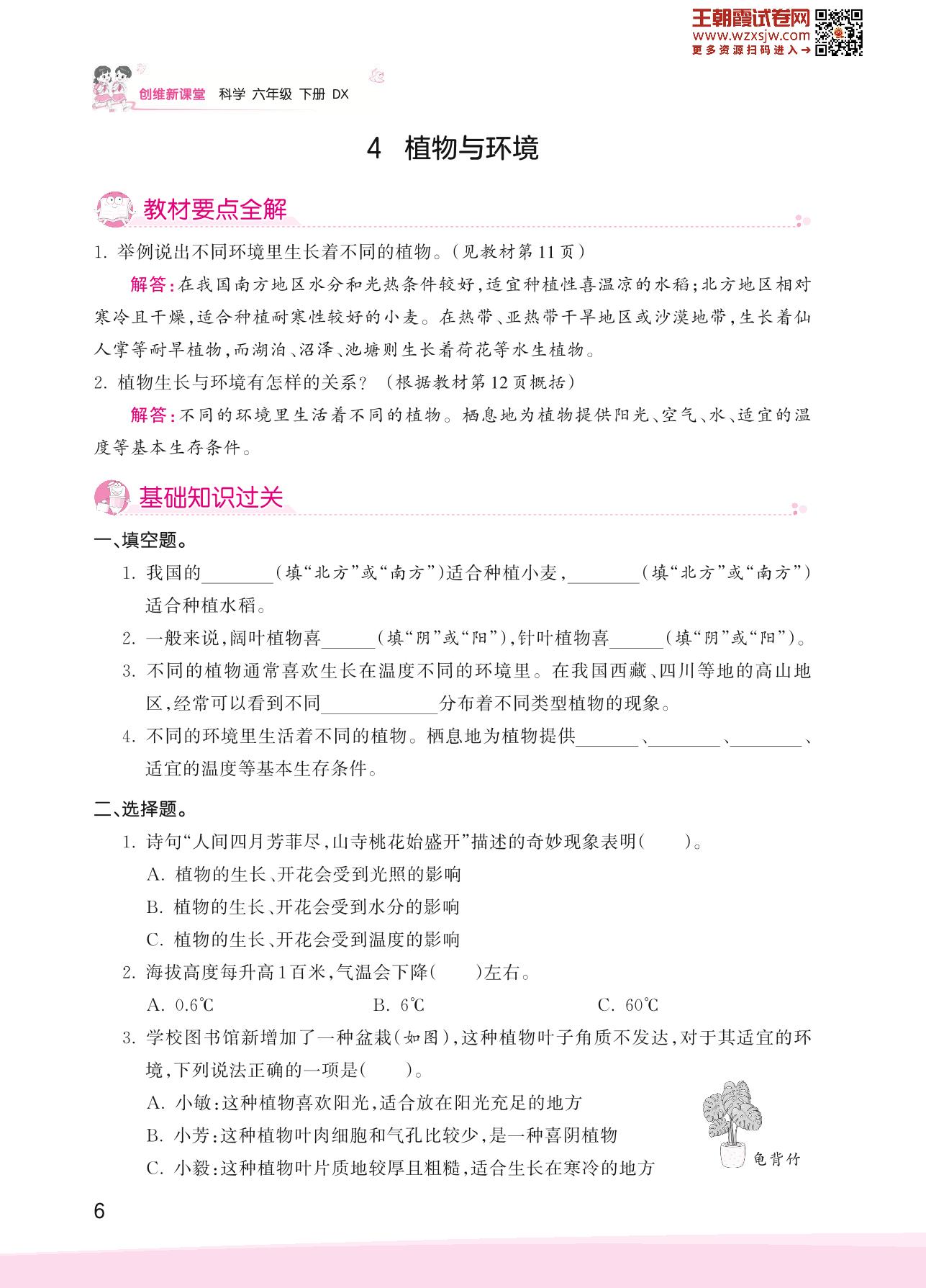 2023下册六年级科学大象版 第一单元 生物的家园——4 植物与环境