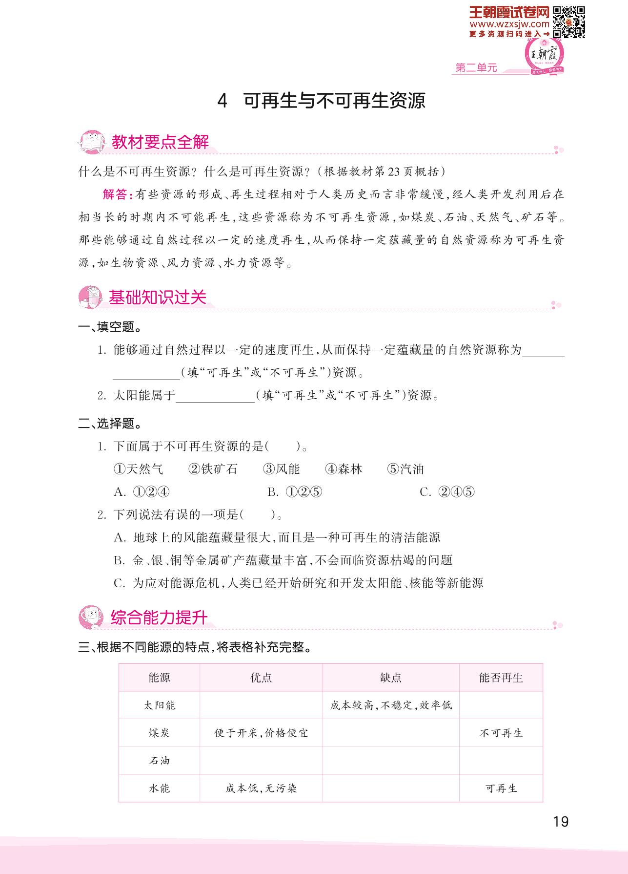 2023下册六年级科学大象版 第二单元 自然资源——4 可再生与不可再生资源