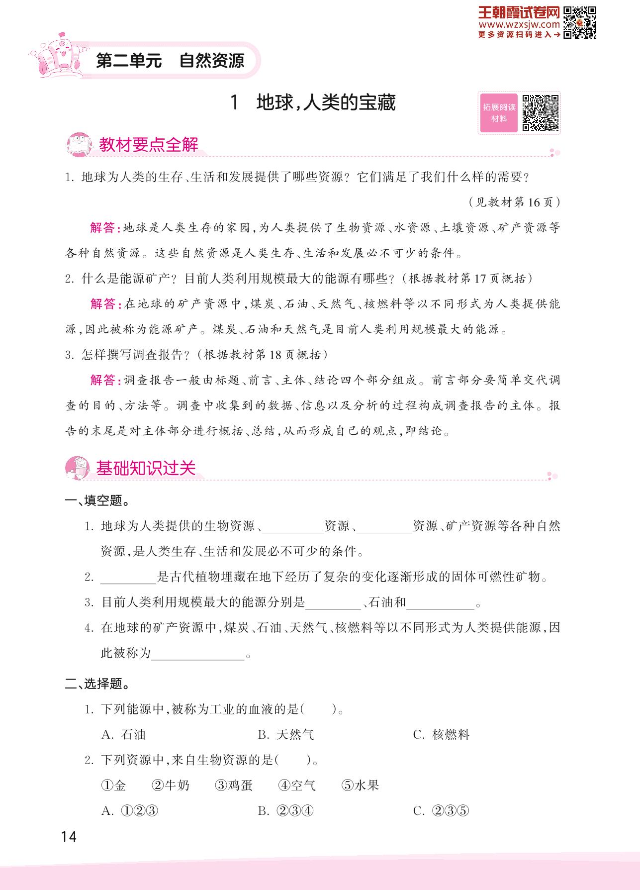 2023下册六年级科学大象版 第二单元 自然资源——1 地球,人类的宝藏