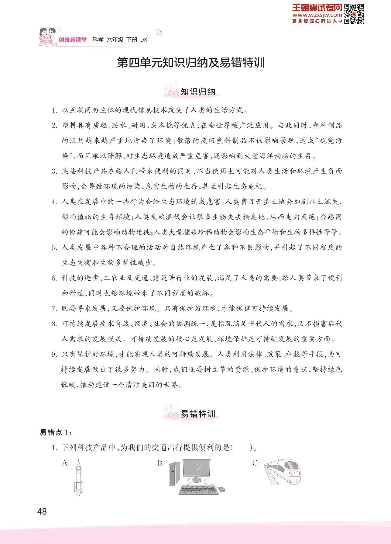 2023下册六年级科学大象版 第四单元知识归纳及易错特训