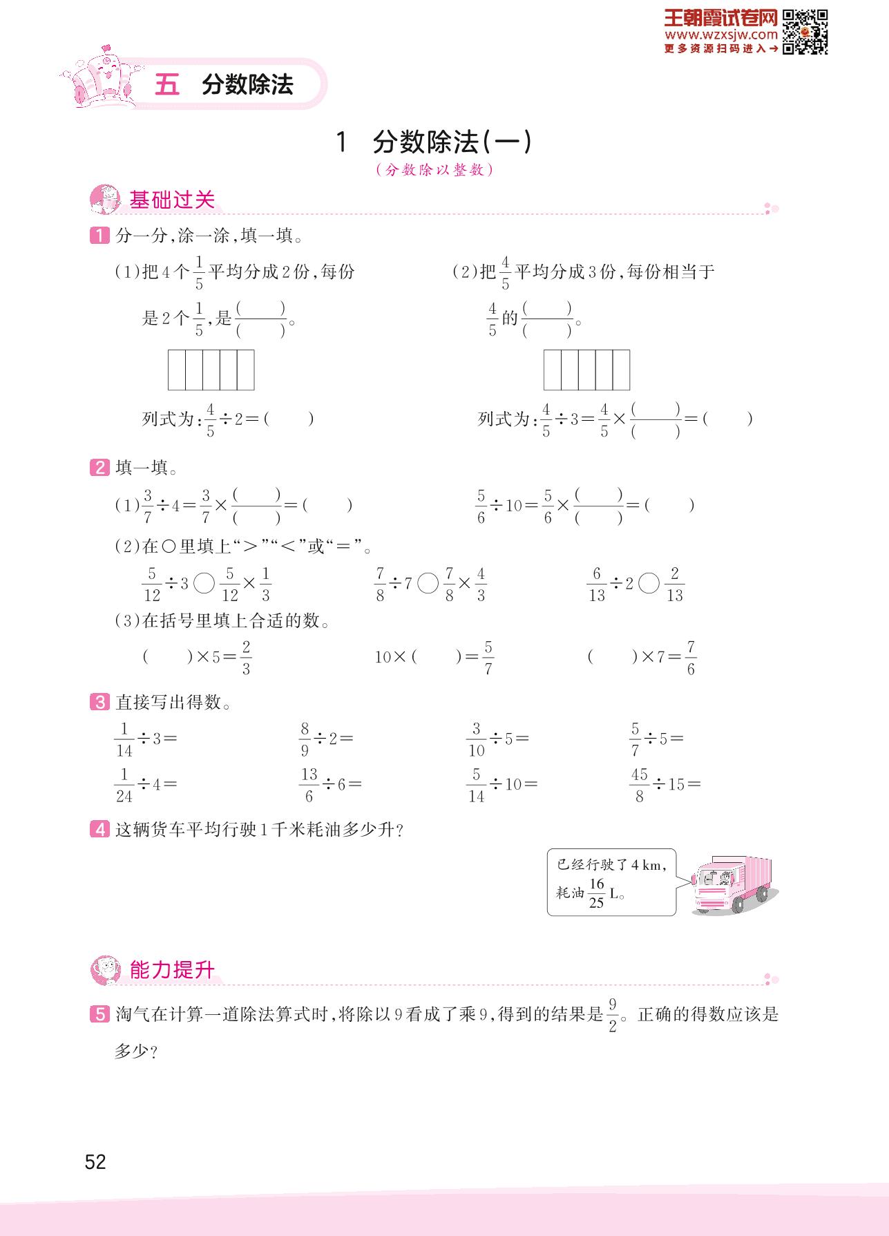 2023下册五年级数学北师版 五 分数除法——1 分数除法(一)