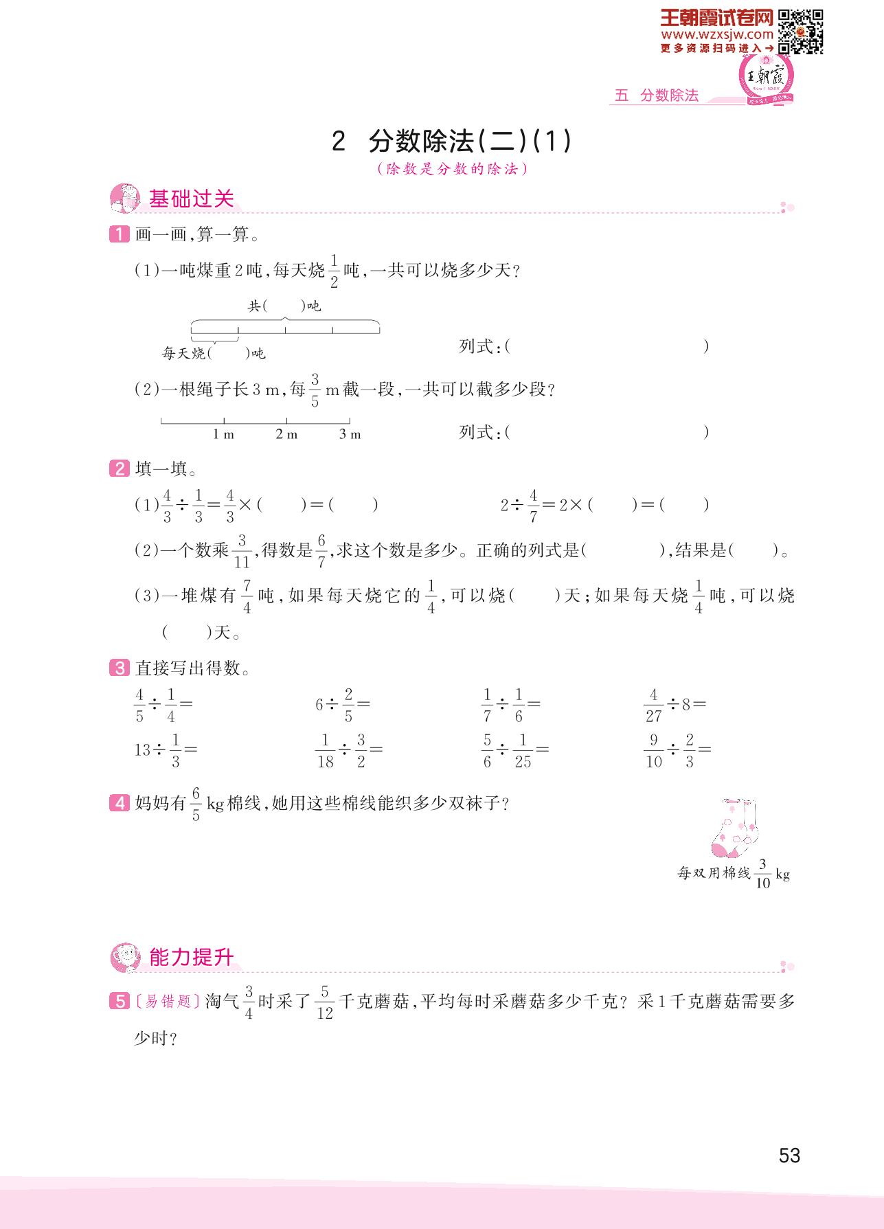 2023下册五年级数学北师版 五 分数除法——2 分数除法(二)(1)