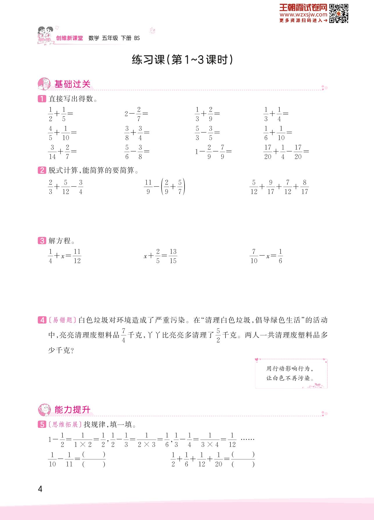 2023下册五年级数学北师版 一 分数加减法——练习课(第1~3课时)