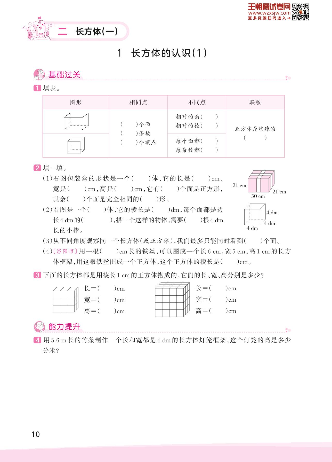 2023下册五年级数学北师版 二 长方体(一) ——1 长方体的认识(1)