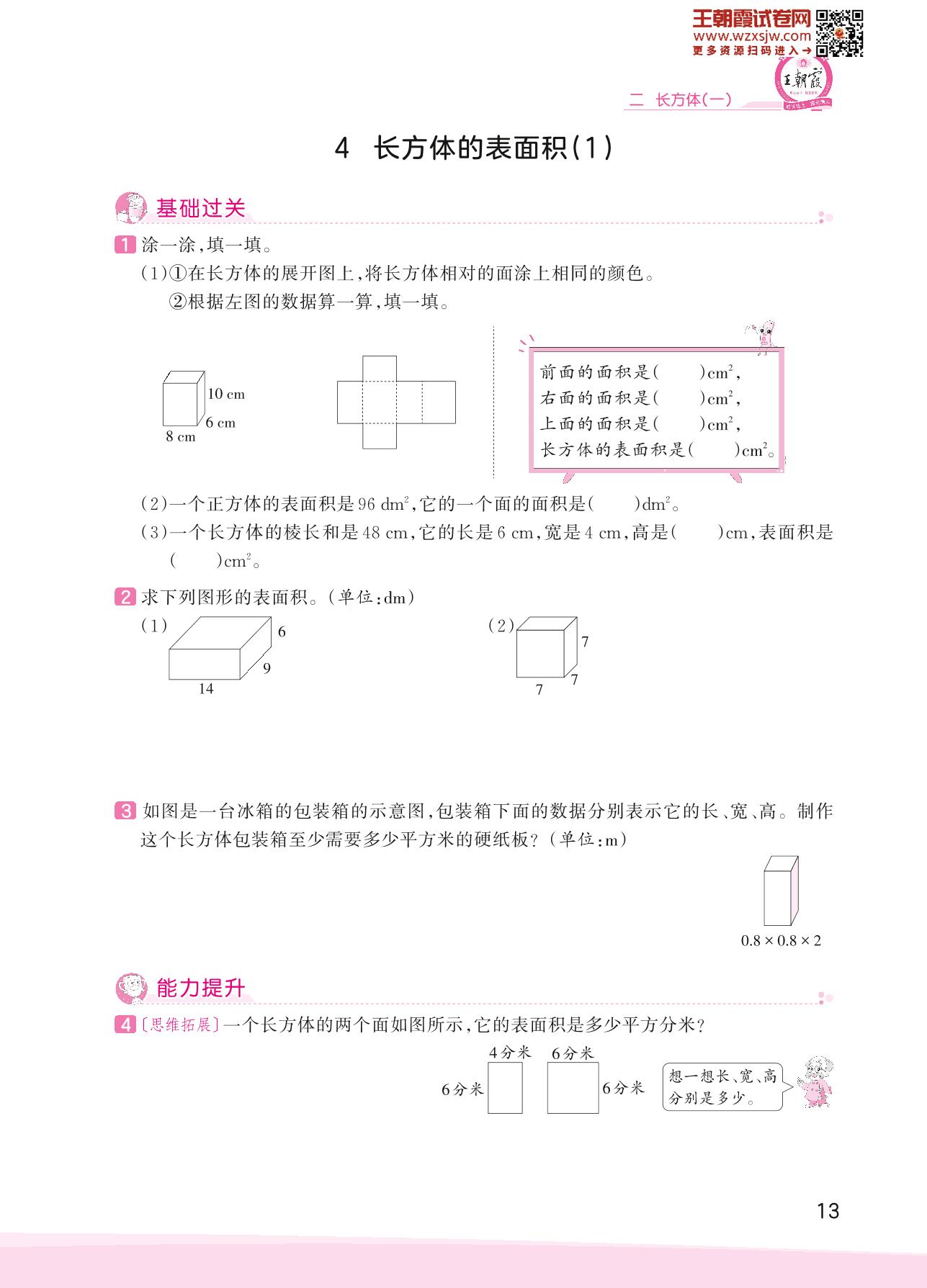 2023下册五年级数学北师版 二 长方体(一) ——4 长方体的表面积(1)