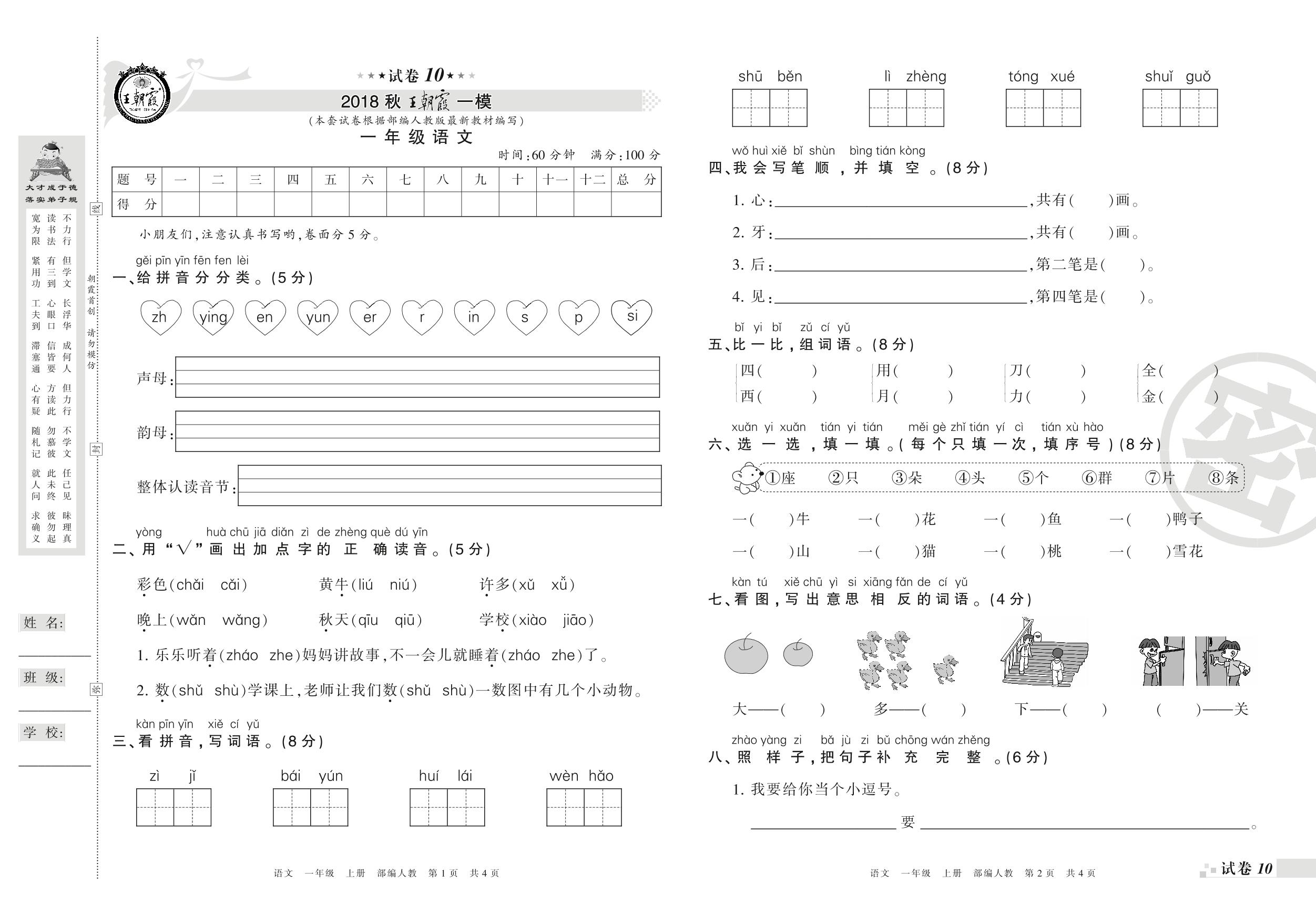 王朝霞期末模拟卷一年级上册语文(人教版)_R210731185524【10】