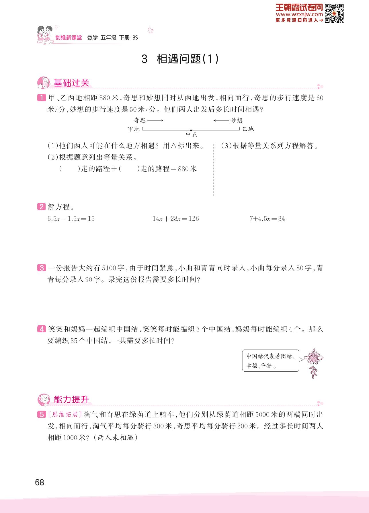 2023下册五年级数学北师版 七 用方程解决问题——3 相遇问题(1)
