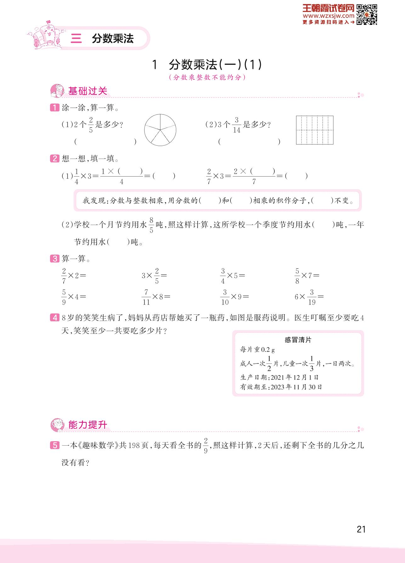 2023下册五年级数学北师版 三 分数乘法——1 分数乘法(一)(1)