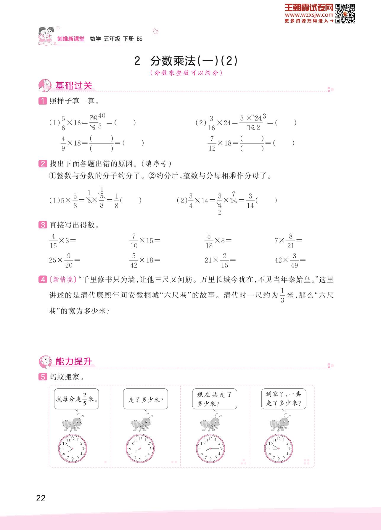 2023下册五年级数学北师版 三 分数乘法——2 分数乘法(一)(2)