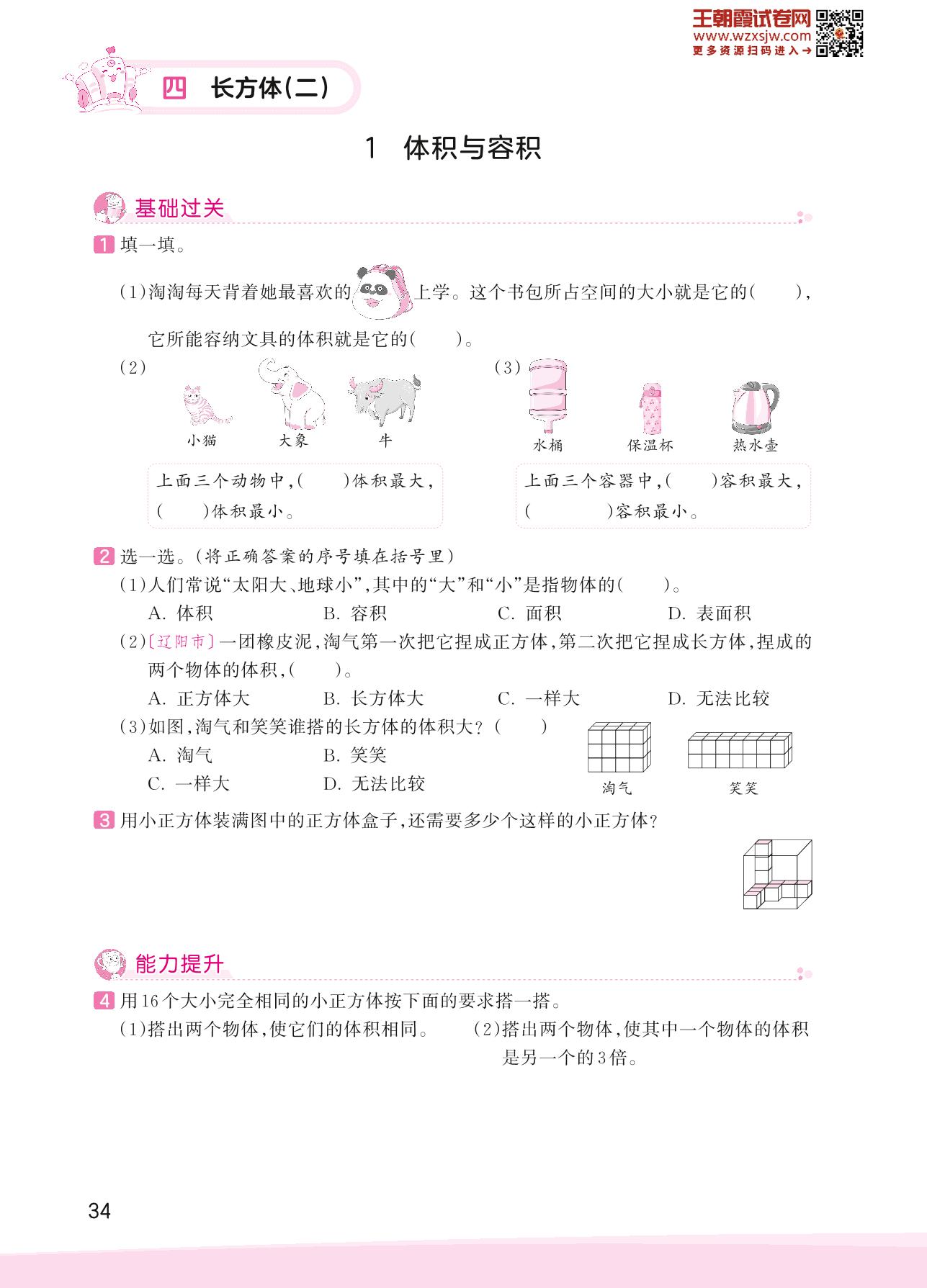 2023下册五年级数学北师版 四 长方体(二)——1 体积与容积