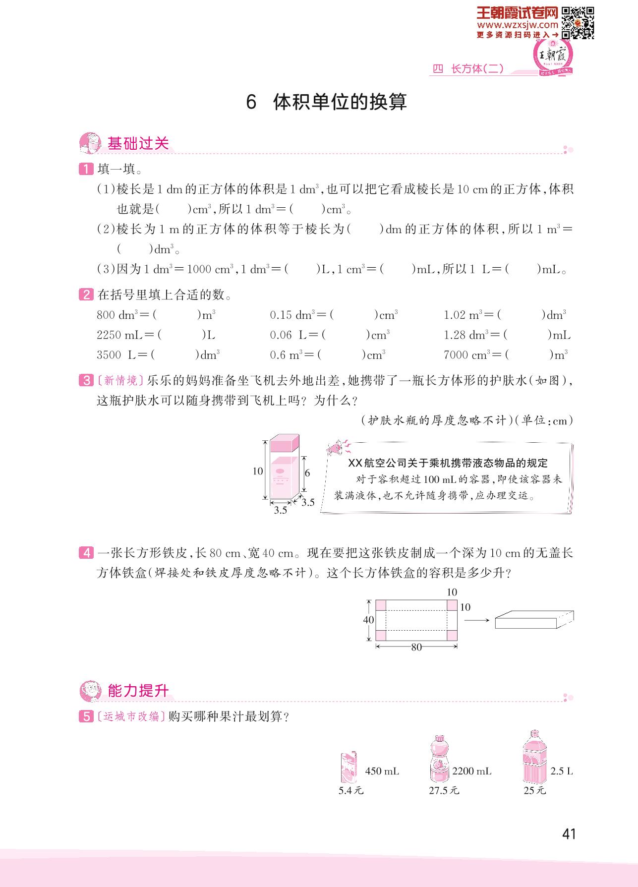 2023下册五年级数学北师版 四 长方体(二)——6 体积单位的换算