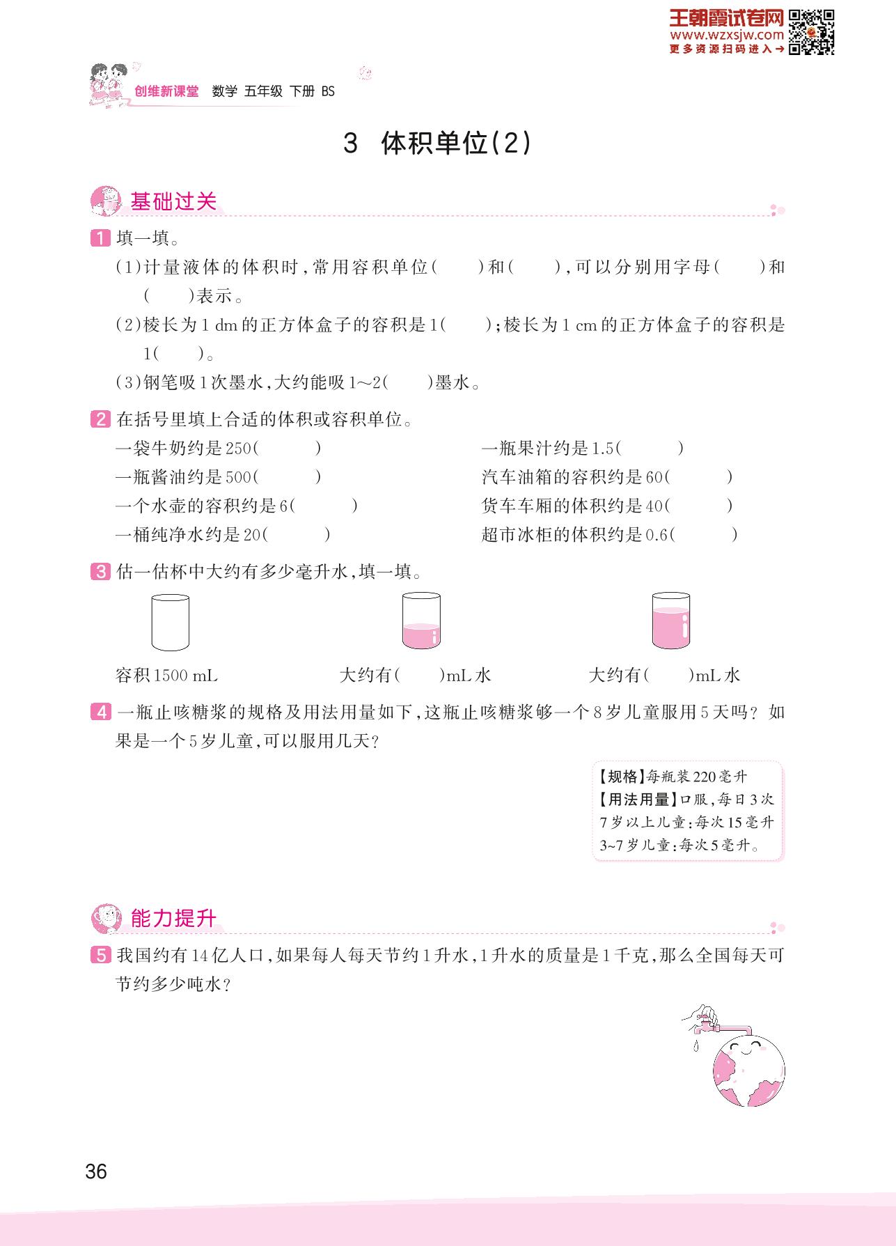 2023下册五年级数学北师版 四 长方体(二)——3 体积单位(2)