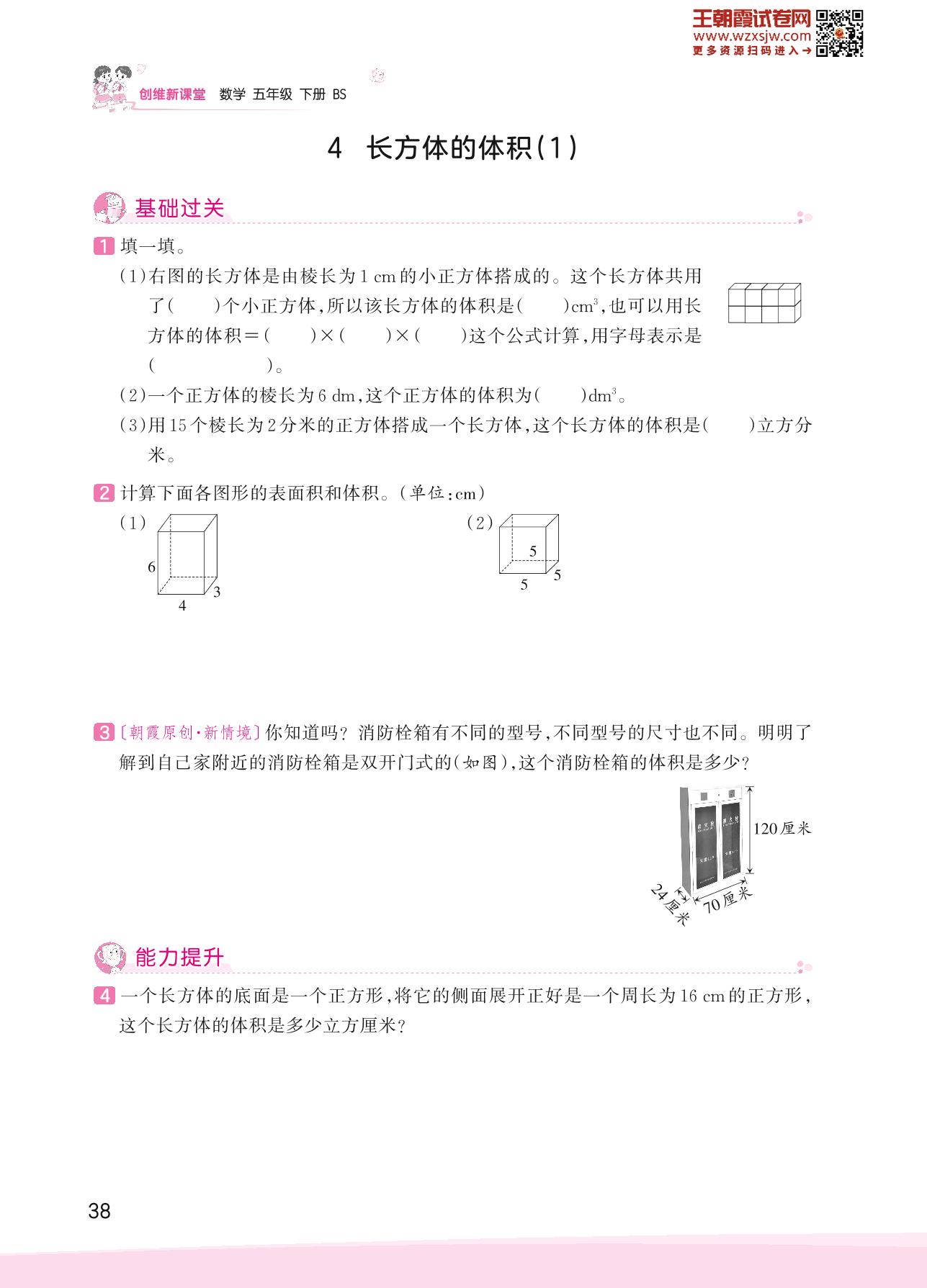 2023下册五年级数学北师版 四 长方体(二)——4 长方体的体积(1)