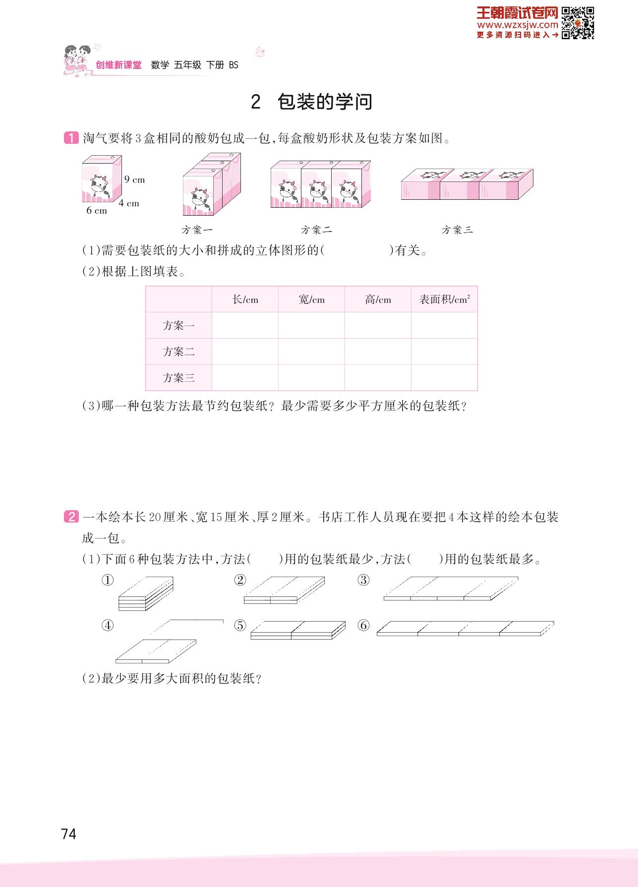 2023下册五年级数学北师版 数学好玩——2 包装的学问