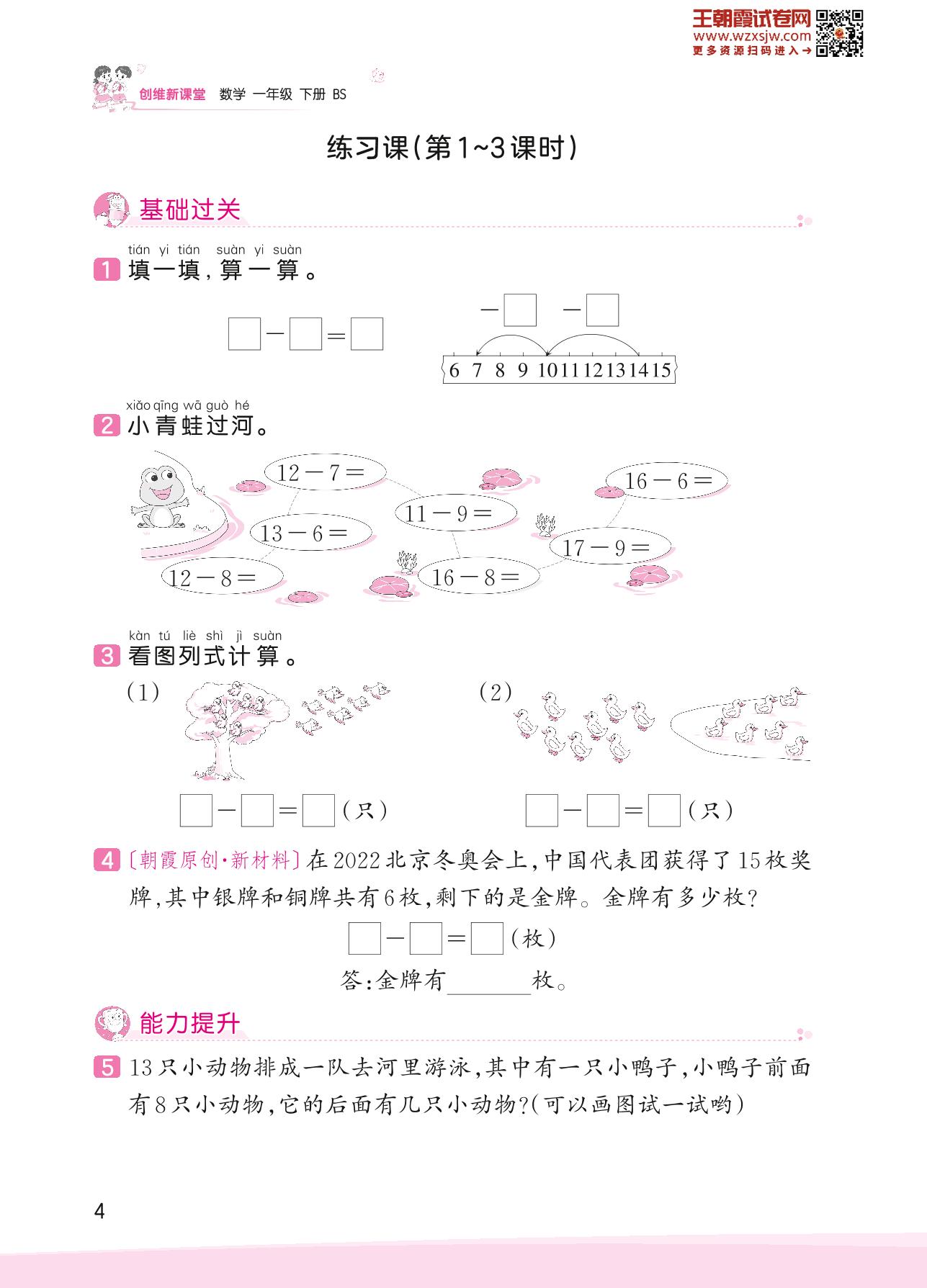 2023下册一年级数学北师版 一 加与减(一)——练习课(第1~3课时)