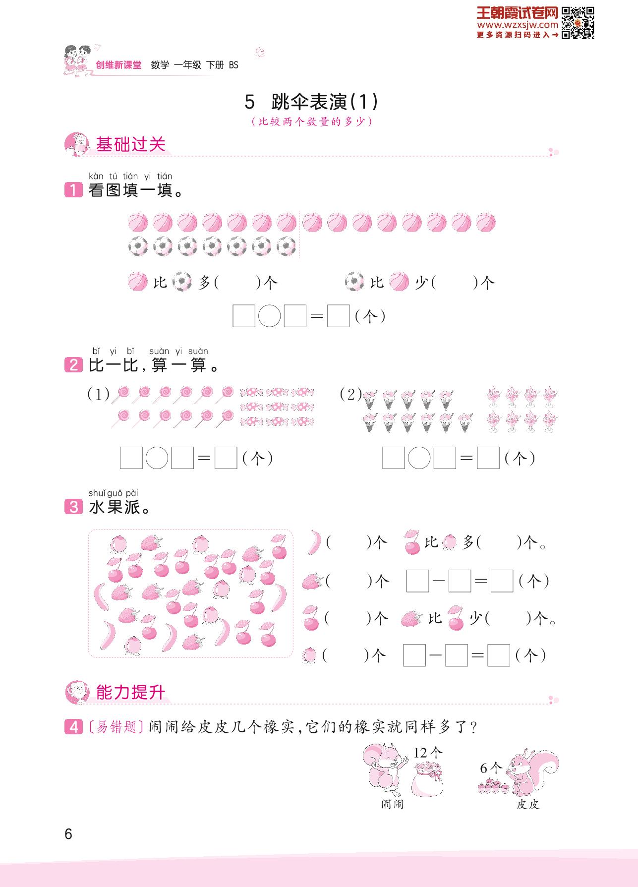 2023下册一年级数学北师版 一 加与减(一)——5 跳伞表演(1)