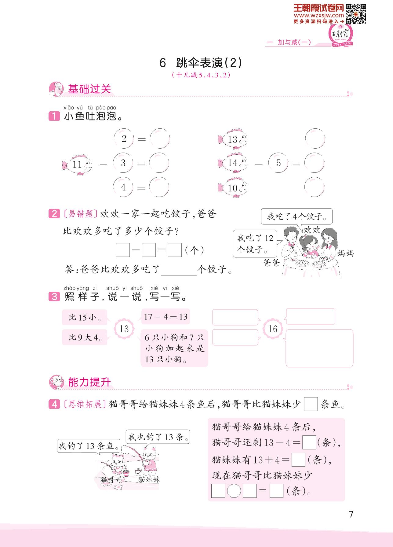 2023下册一年级数学北师版 一 加与减(一)——6 跳伞表演(2)