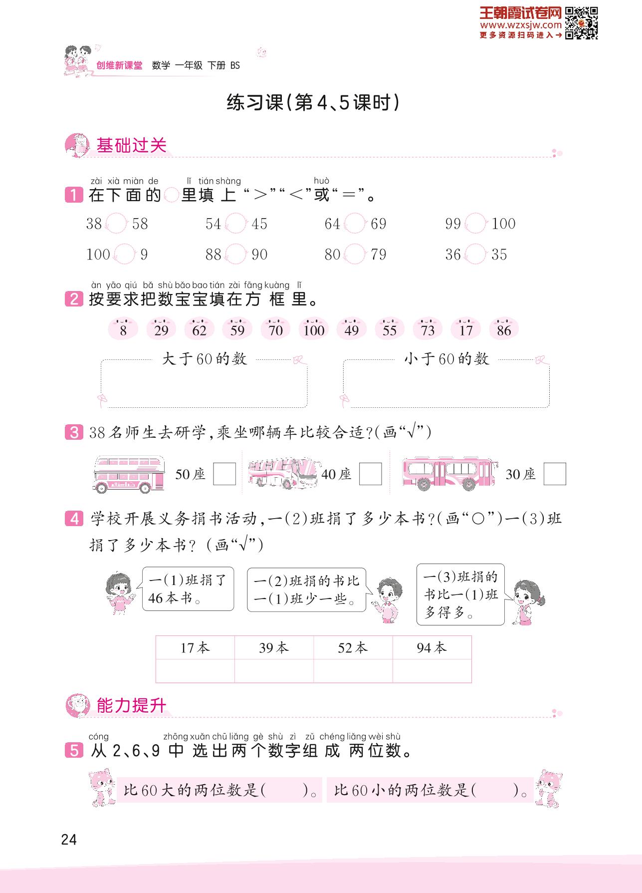 2023下册一年级数学北师版 三 生活中的数——练习课(第4、5课时)