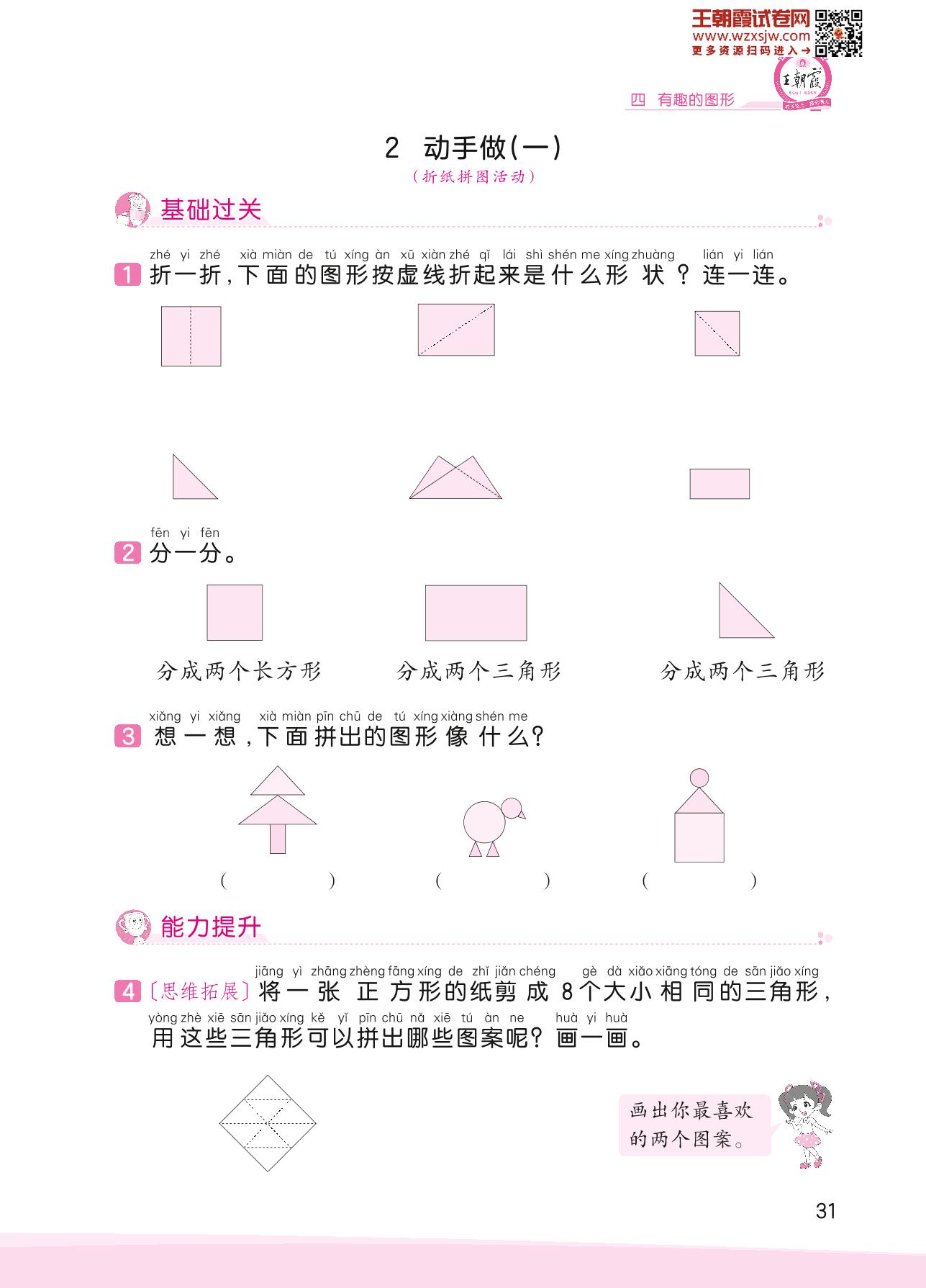 2023下册一年级数学北师版 四 有趣的图形——2 动手做(一)
