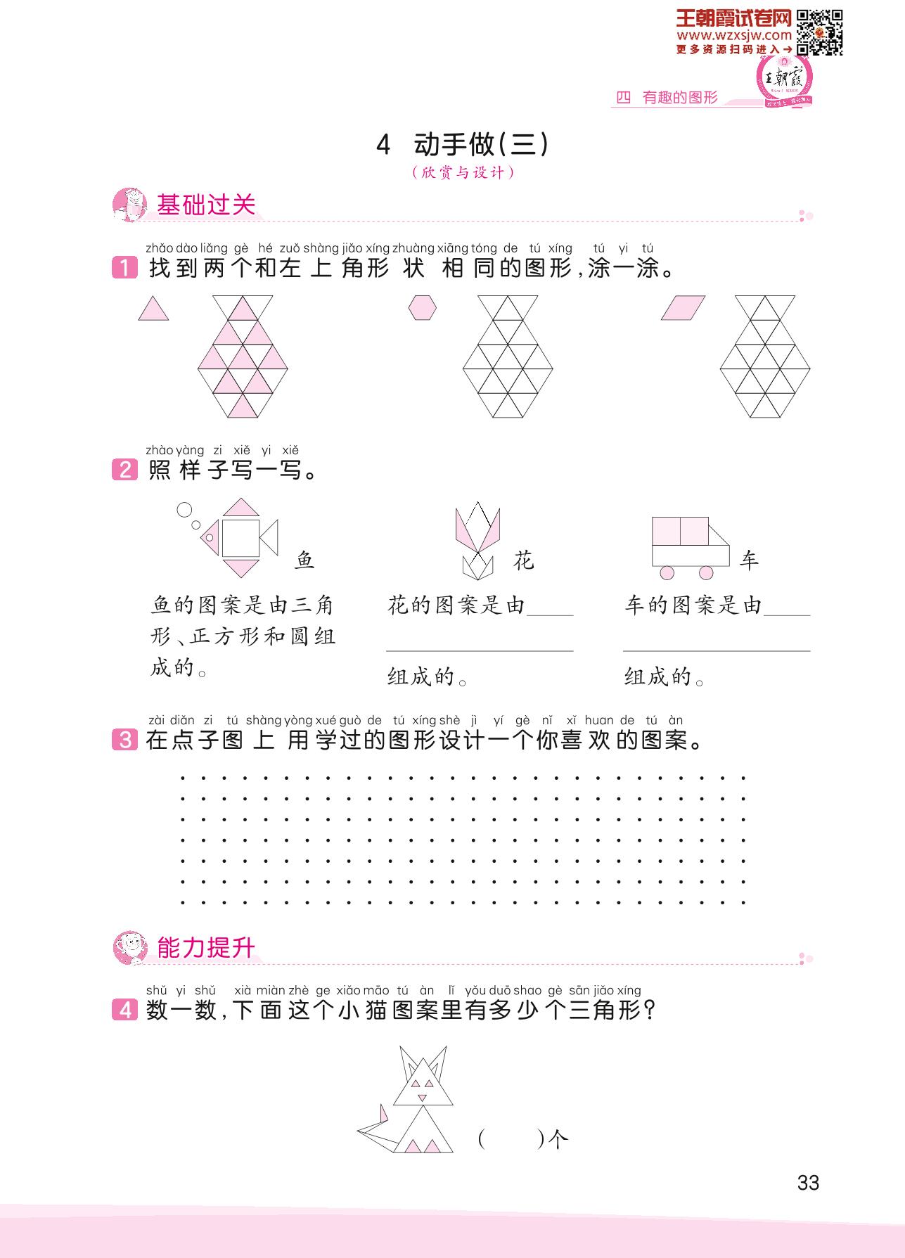 2023下册一年级数学北师版 四 有趣的图形——4 动手做(三)