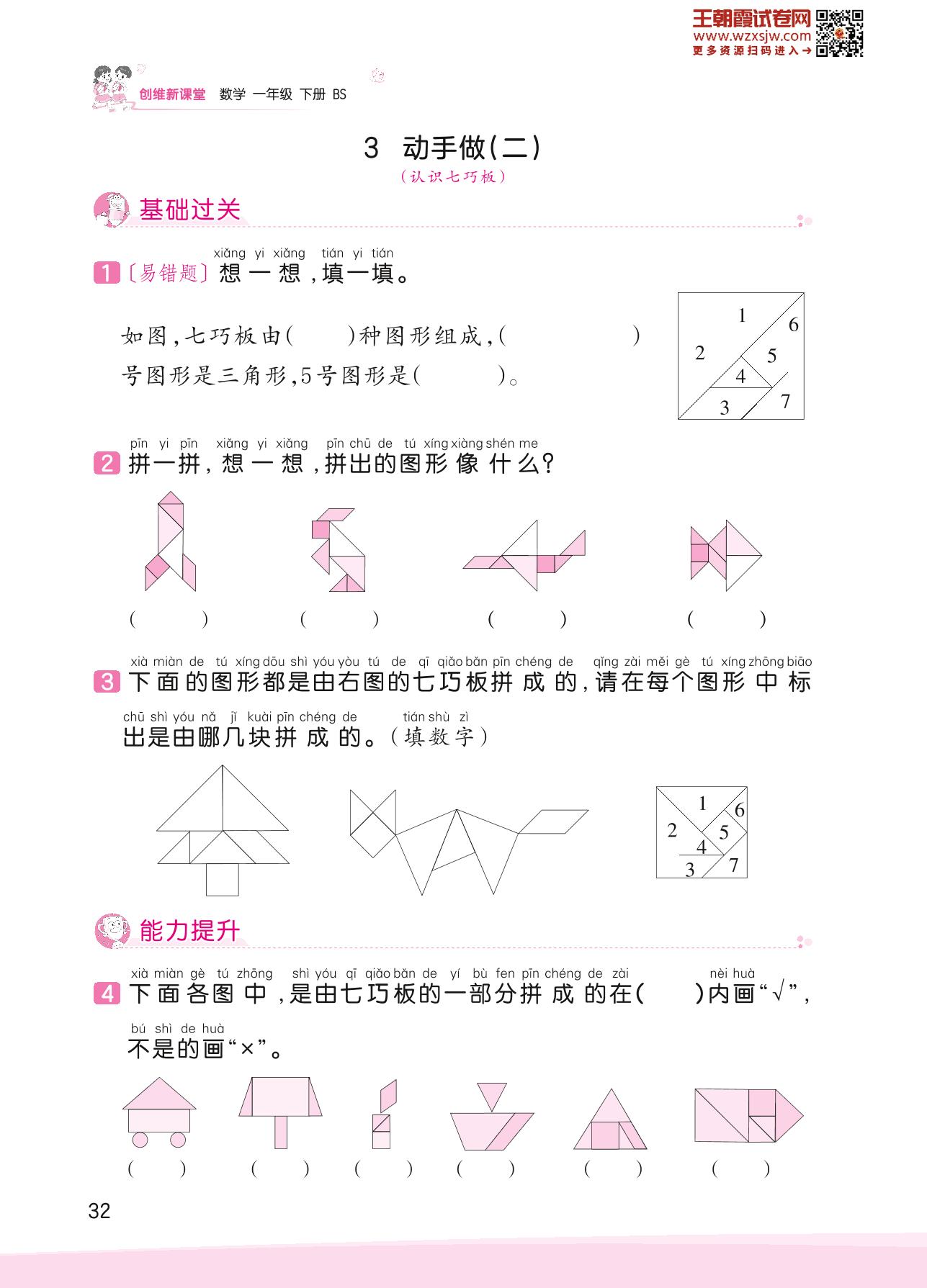 2023下册一年级数学北师版 四 有趣的图形——3 动手做(二)