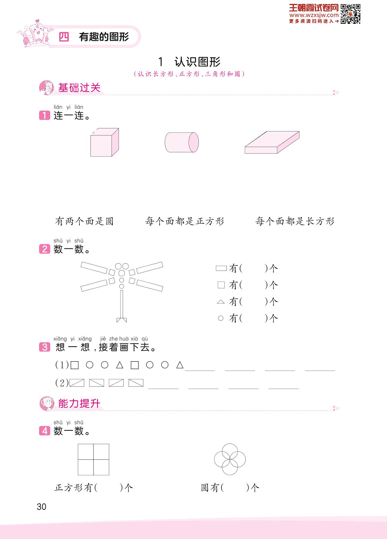 2023下册一年级数学北师版 四 有趣的图形——1 认识图形