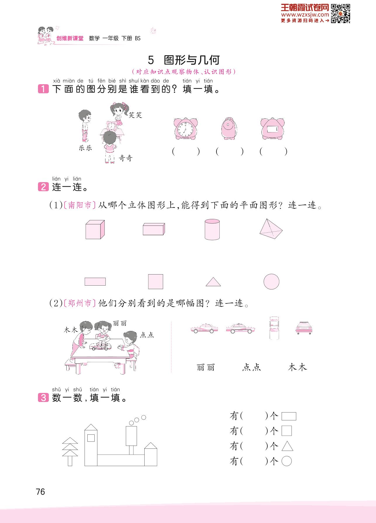 2023下册一年级数学北师版 总复习——5 图形与几何