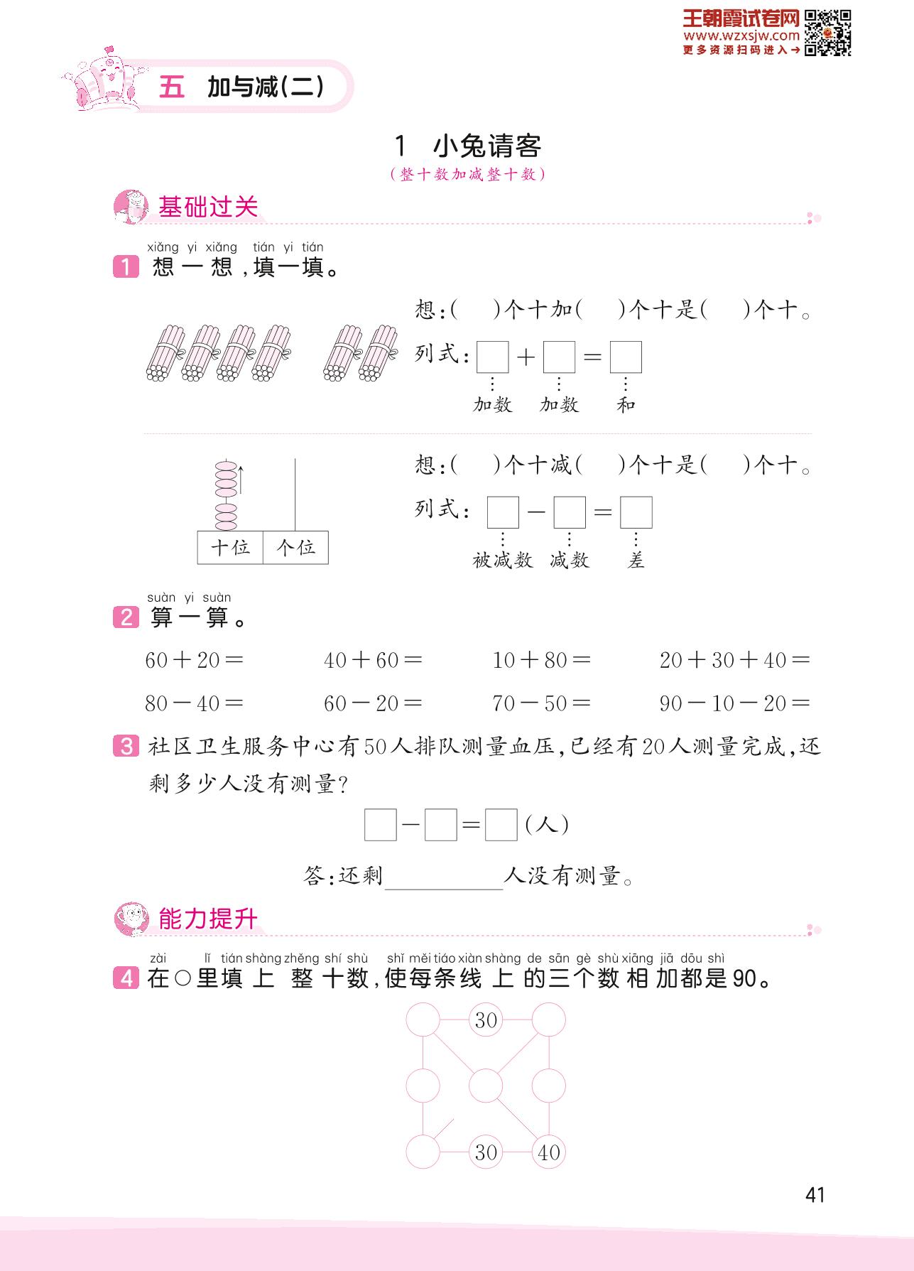 2023下册一年级数学北师版 五 加与减(二)——1 小兔请客