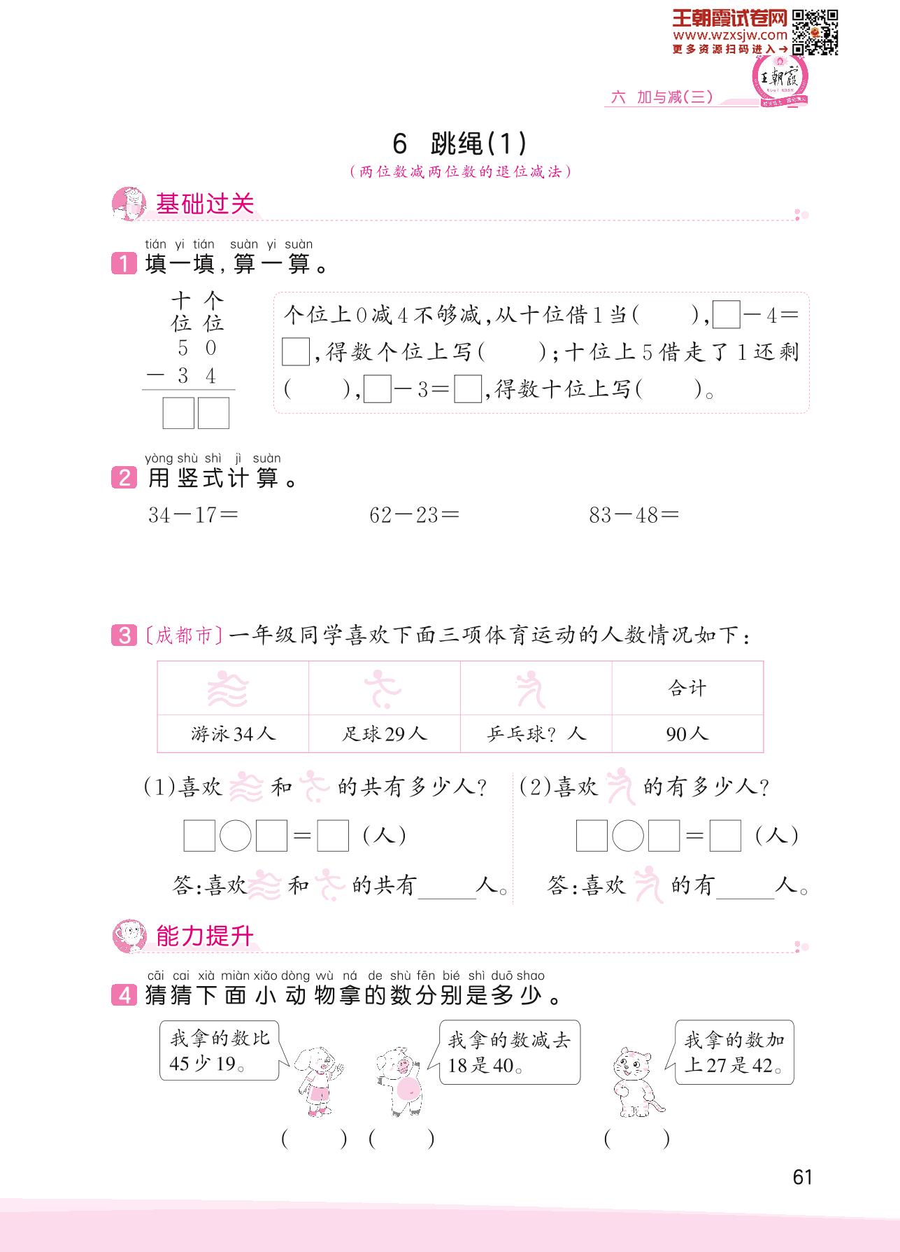 2023下册一年级数学北师版 六 加与减(三)——6 跳绳(1)