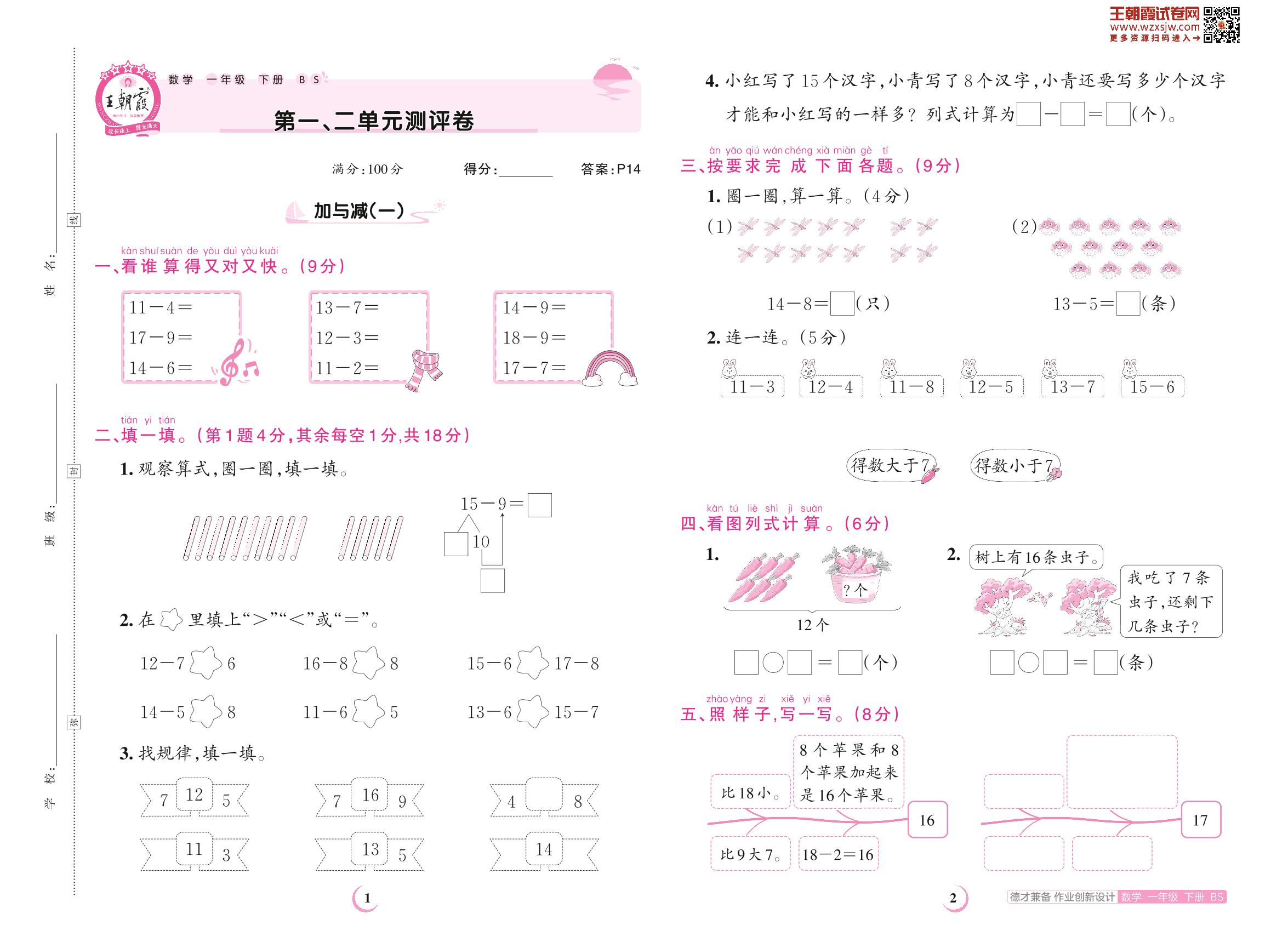 一年级数学北师版下册单元卷