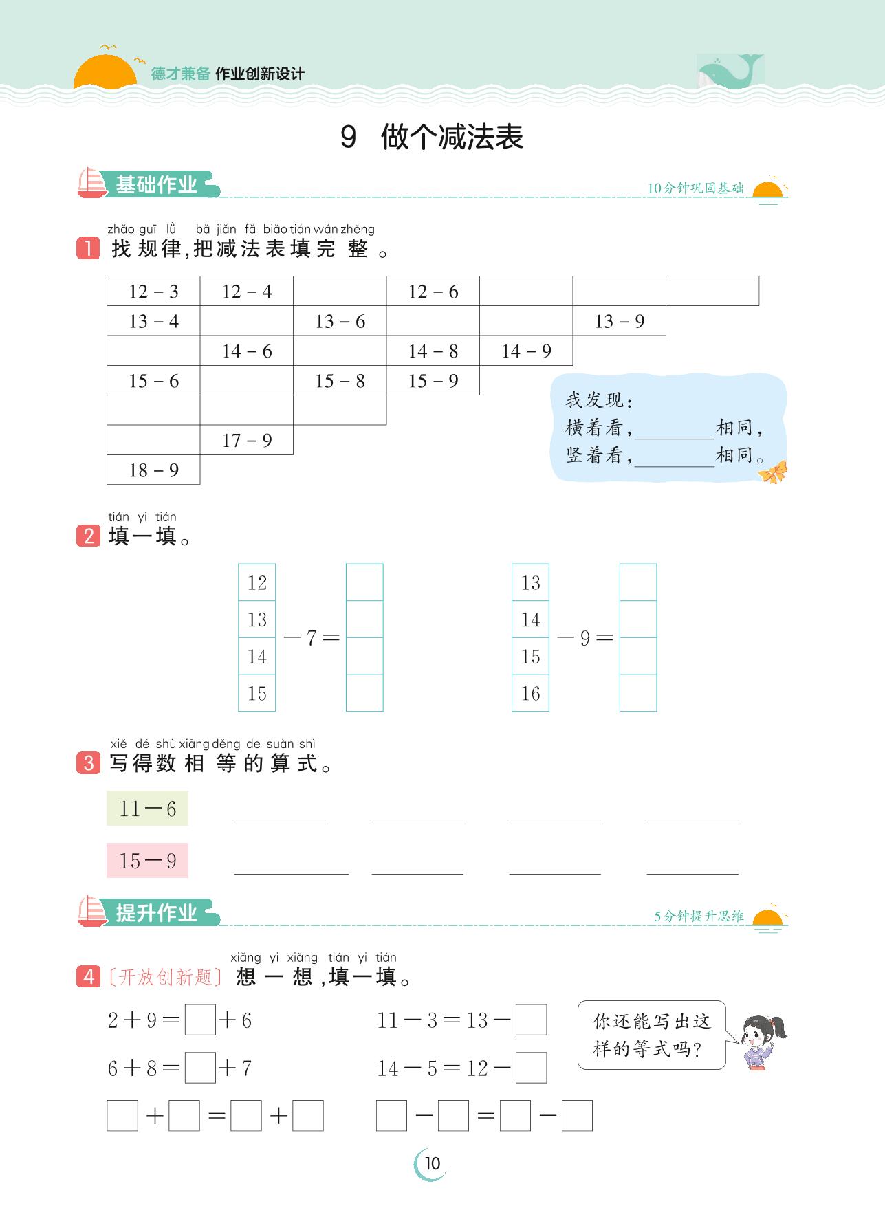 2023下册一年级数学北师版 第一单元 加与减(一)——9 做个减法表
