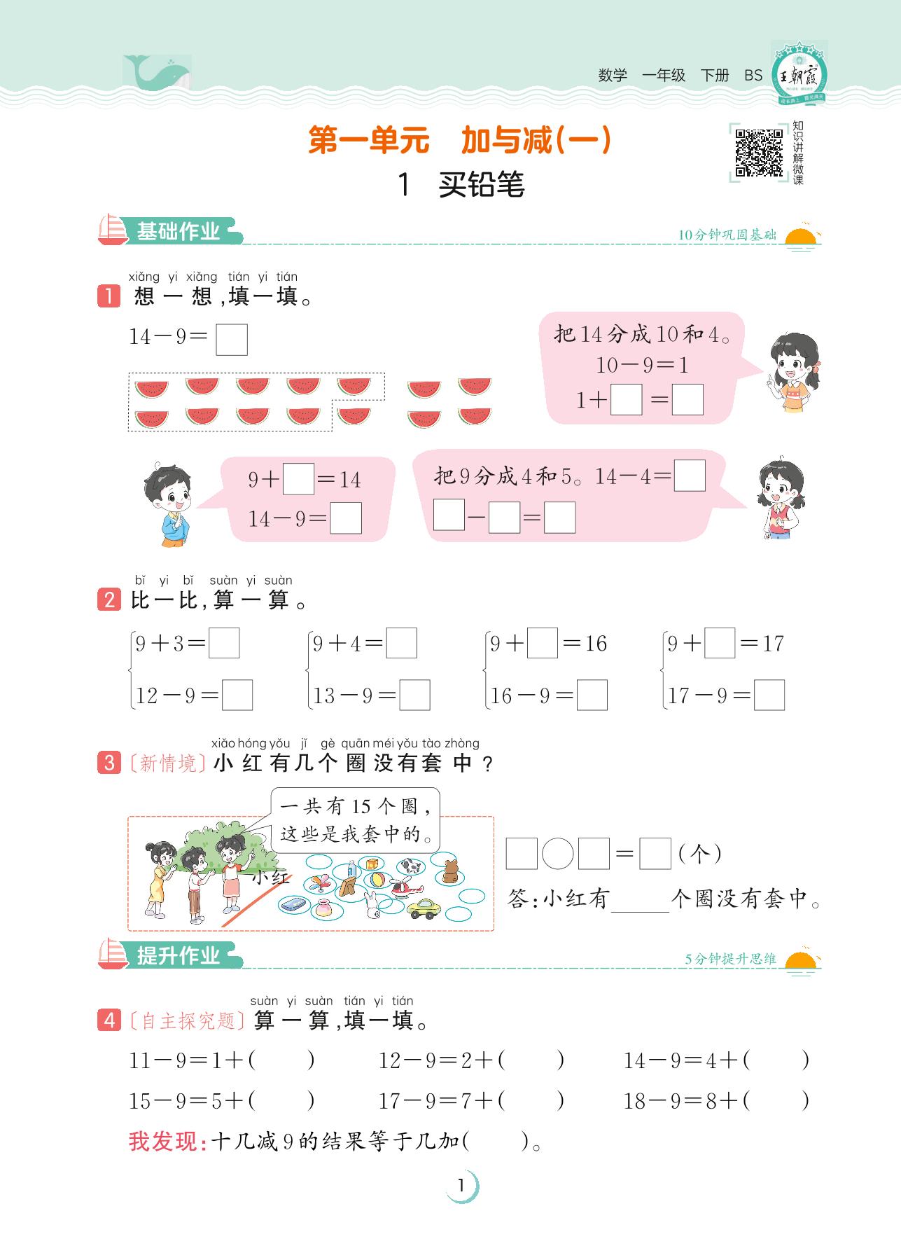 2023下册一年级数学北师版 第一单元 加与减(一)——1 买铅笔