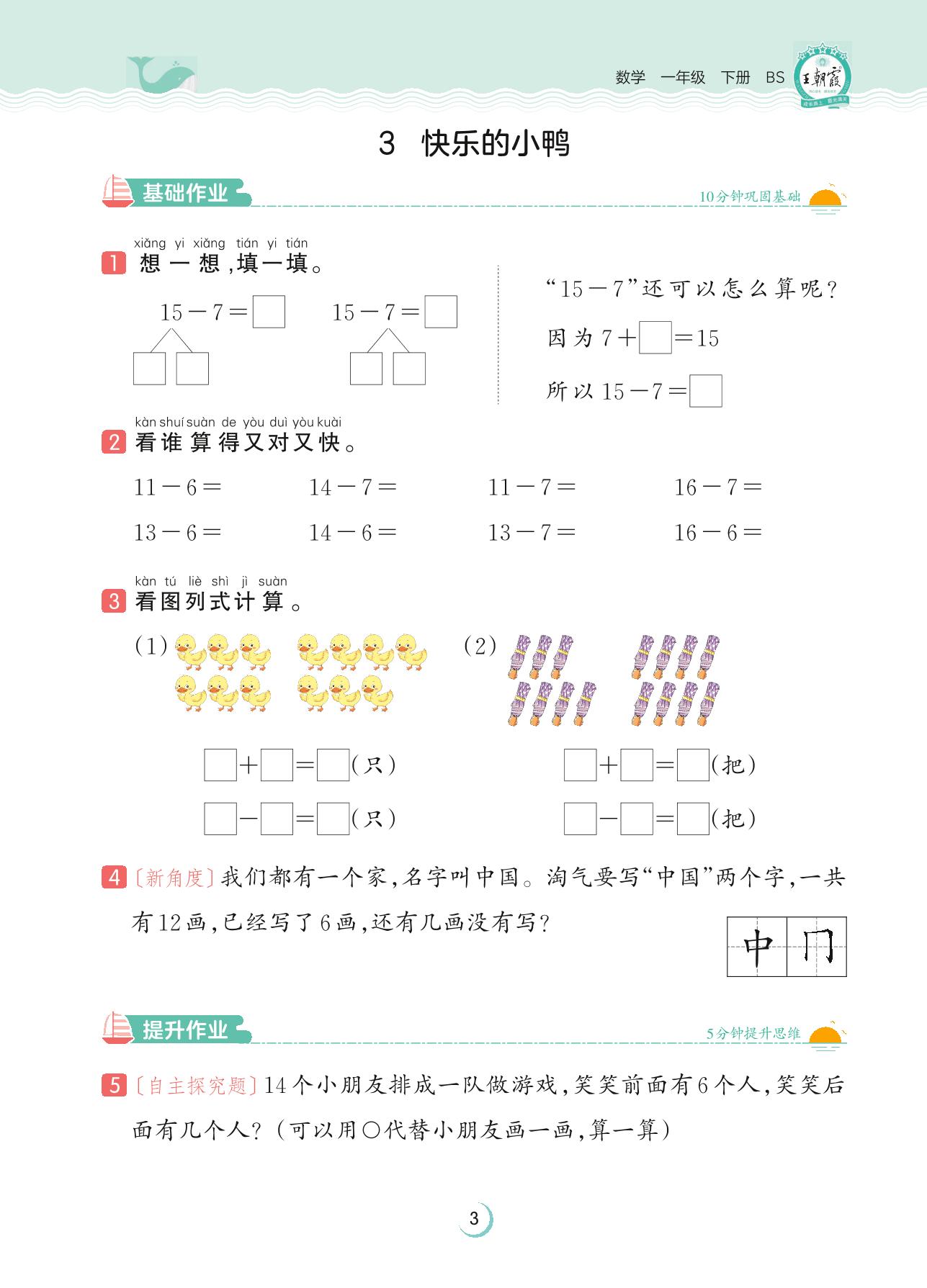 2023下册一年级数学北师版 第一单元 加与减(一)——3 快乐的小鸭