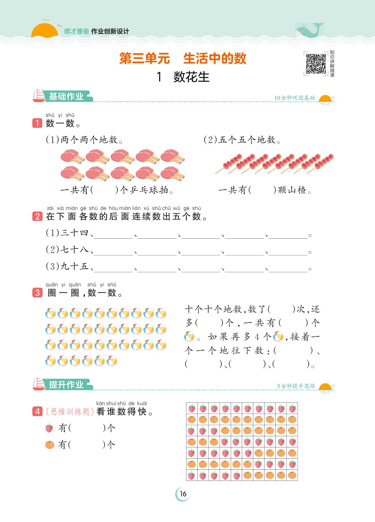 2023下册一年级数学北师版 第三单元 生活中的数——1 数花生