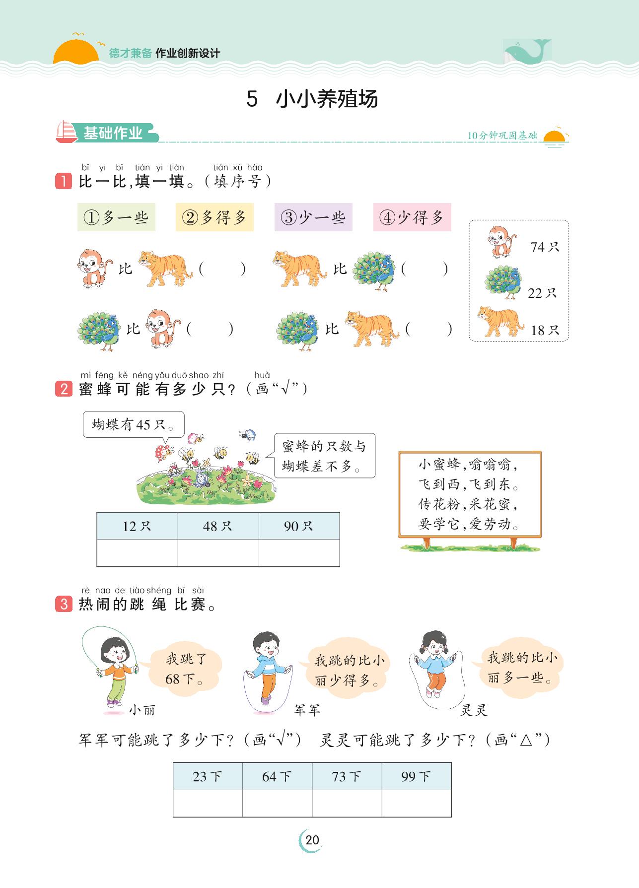 2023下册一年级数学北师版 第三单元 生活中的数——5 小小养殖场