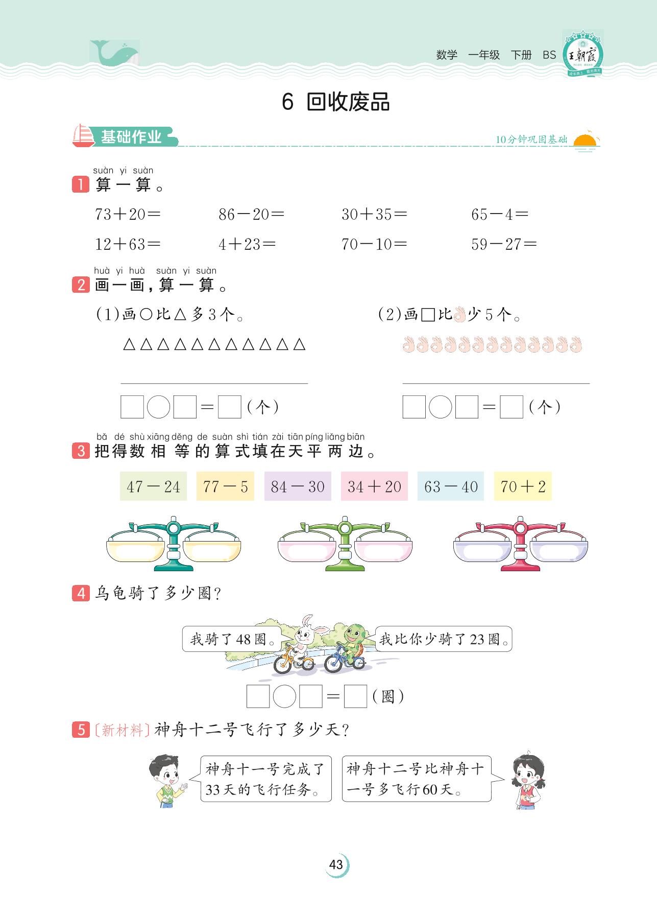 2023下册一年级数学北师版 第五单元 加与减(二)——6 回收废品