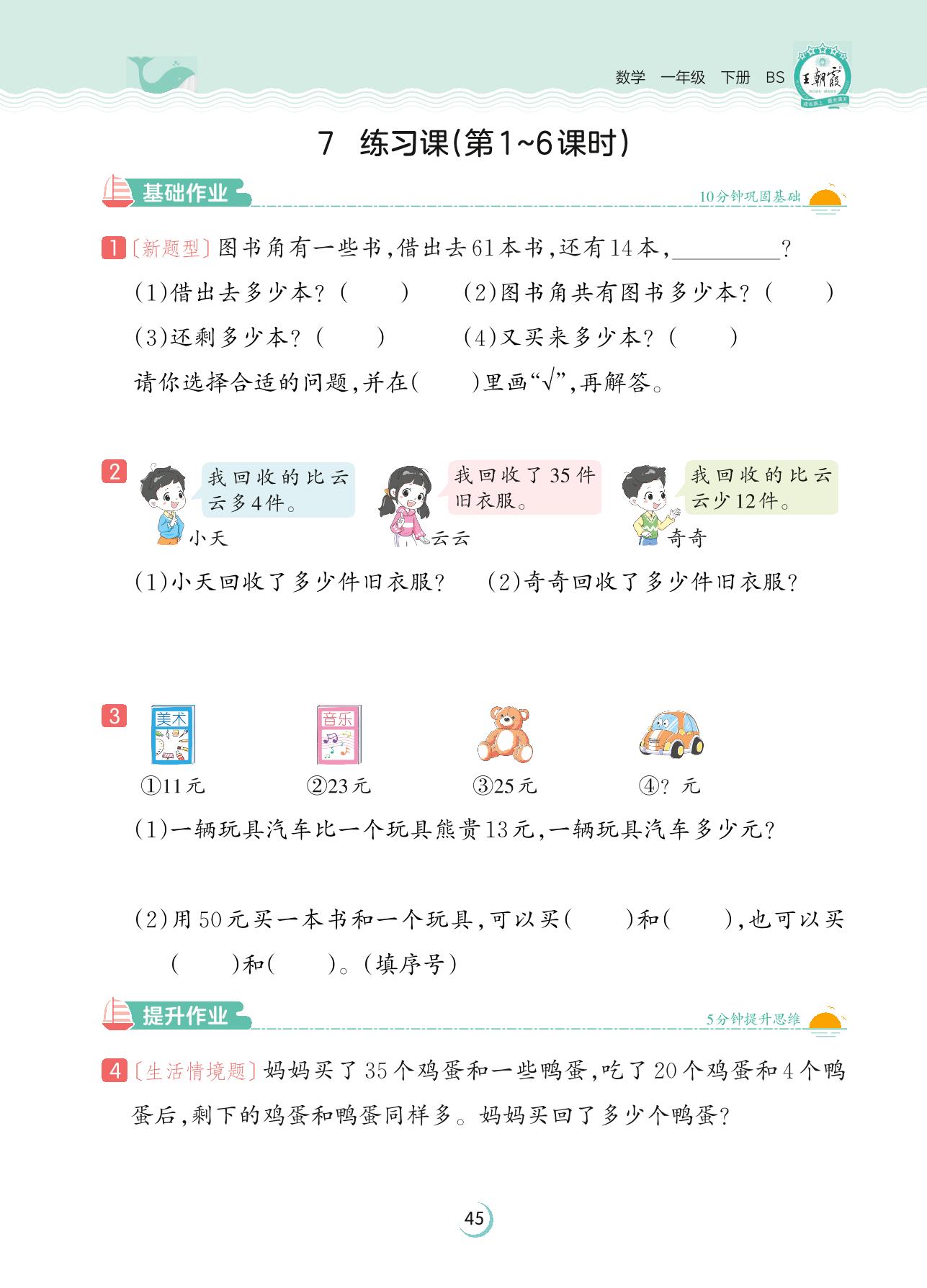 2023下册一年级数学北师版 第五单元 加与减(二)——7 练习课(第1~6课时)