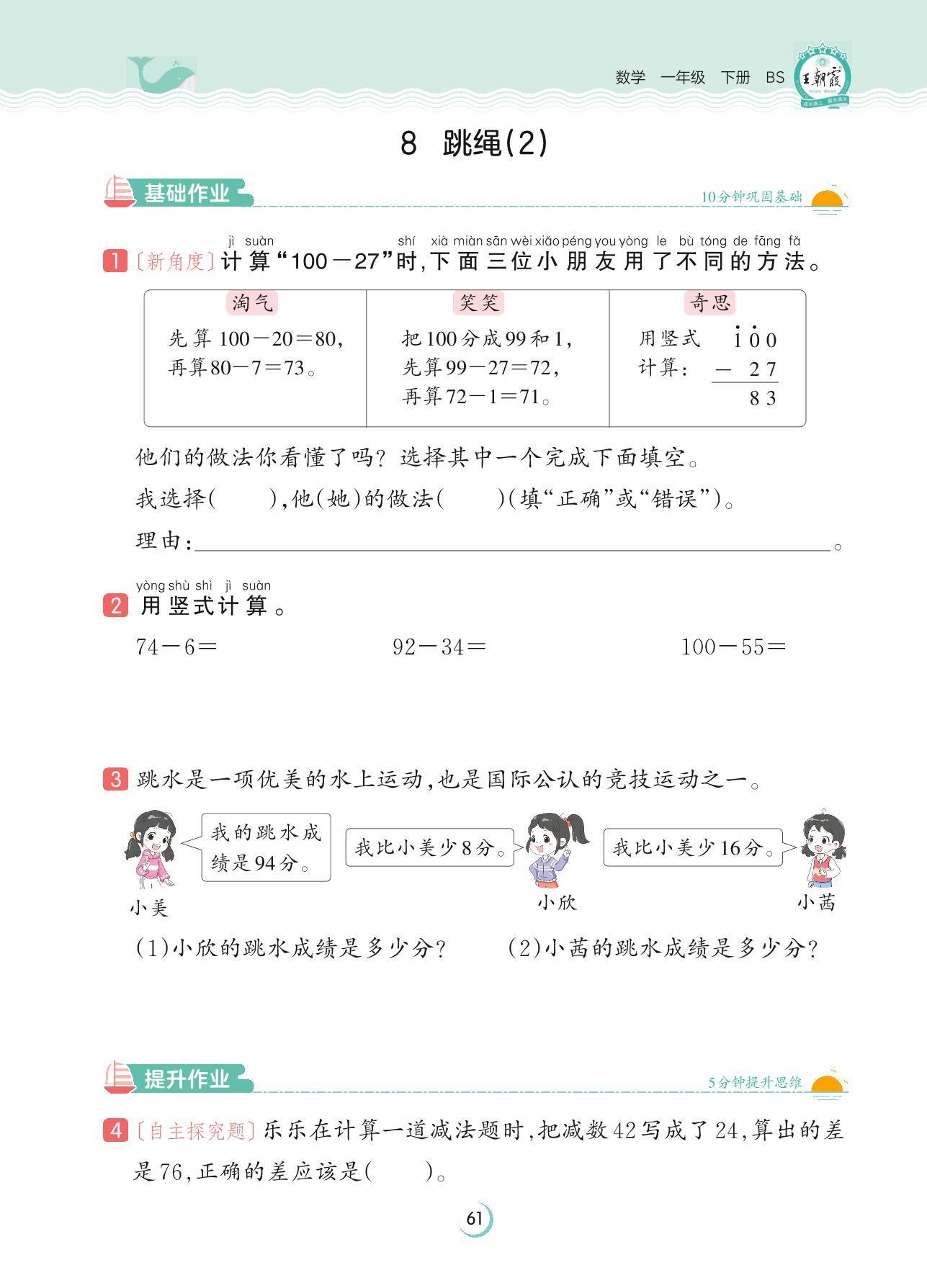 2023下册一年级数学北师版 第六单元 加与减(三)——8 跳绳(2)
