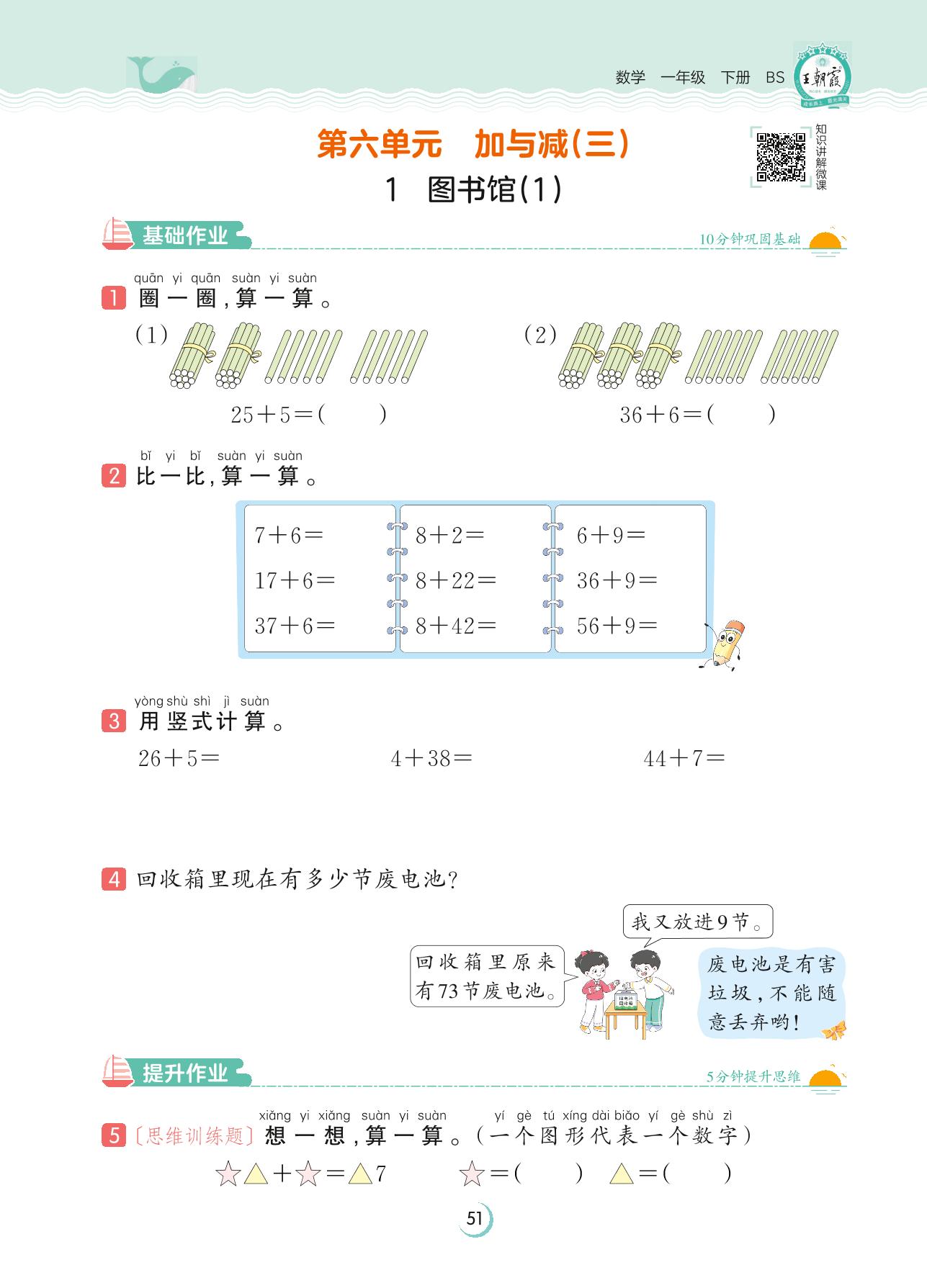 2023下册一年级数学北师版 第六单元 加与减(三)——1 图书馆(1)