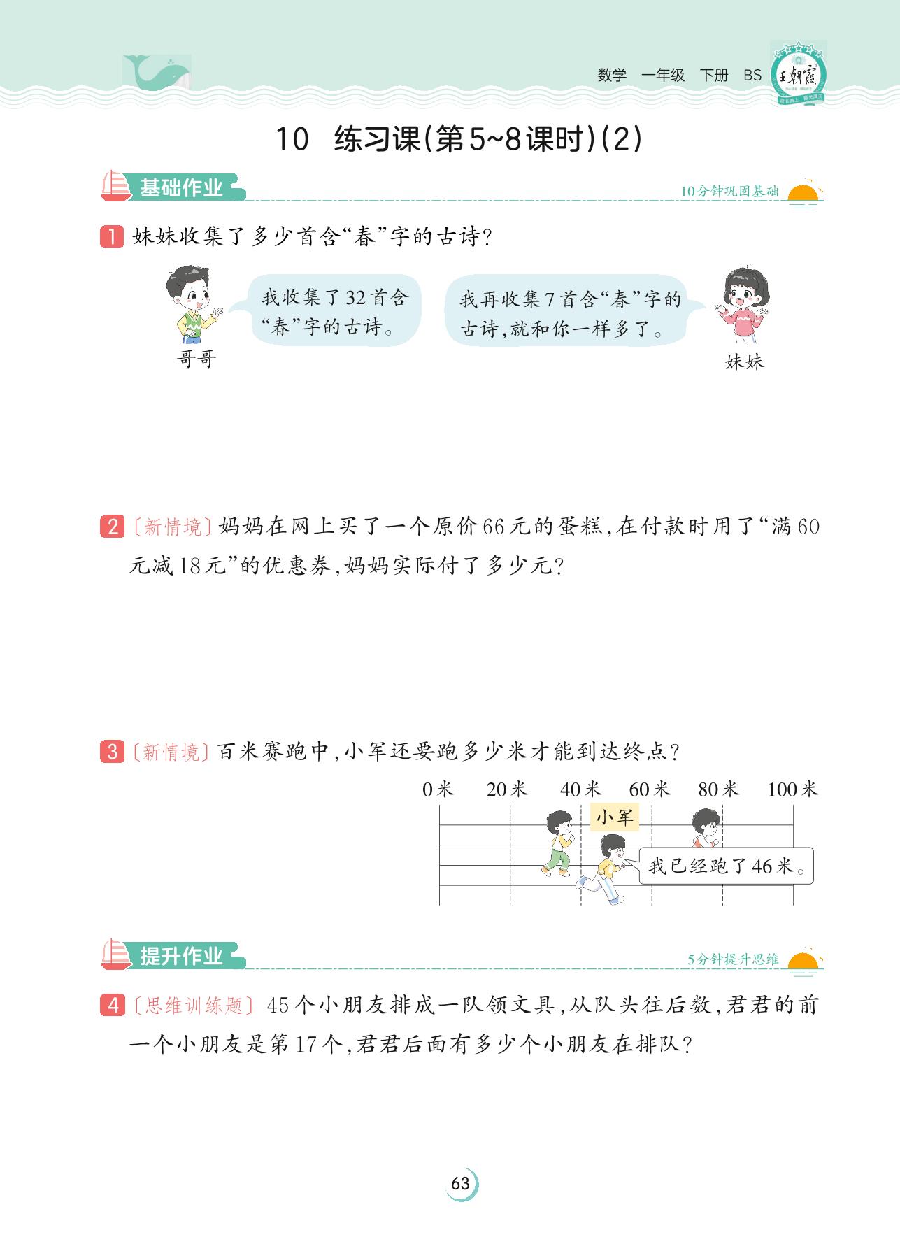 2023下册一年级数学北师版 第六单元 加与减(三)——10 练习课(第5~8课时)(2)