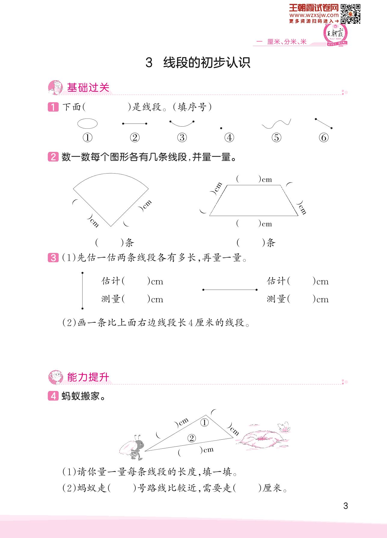 2023下册二年级数学冀教版 一 厘米、分米、米——3 线段的初步认识