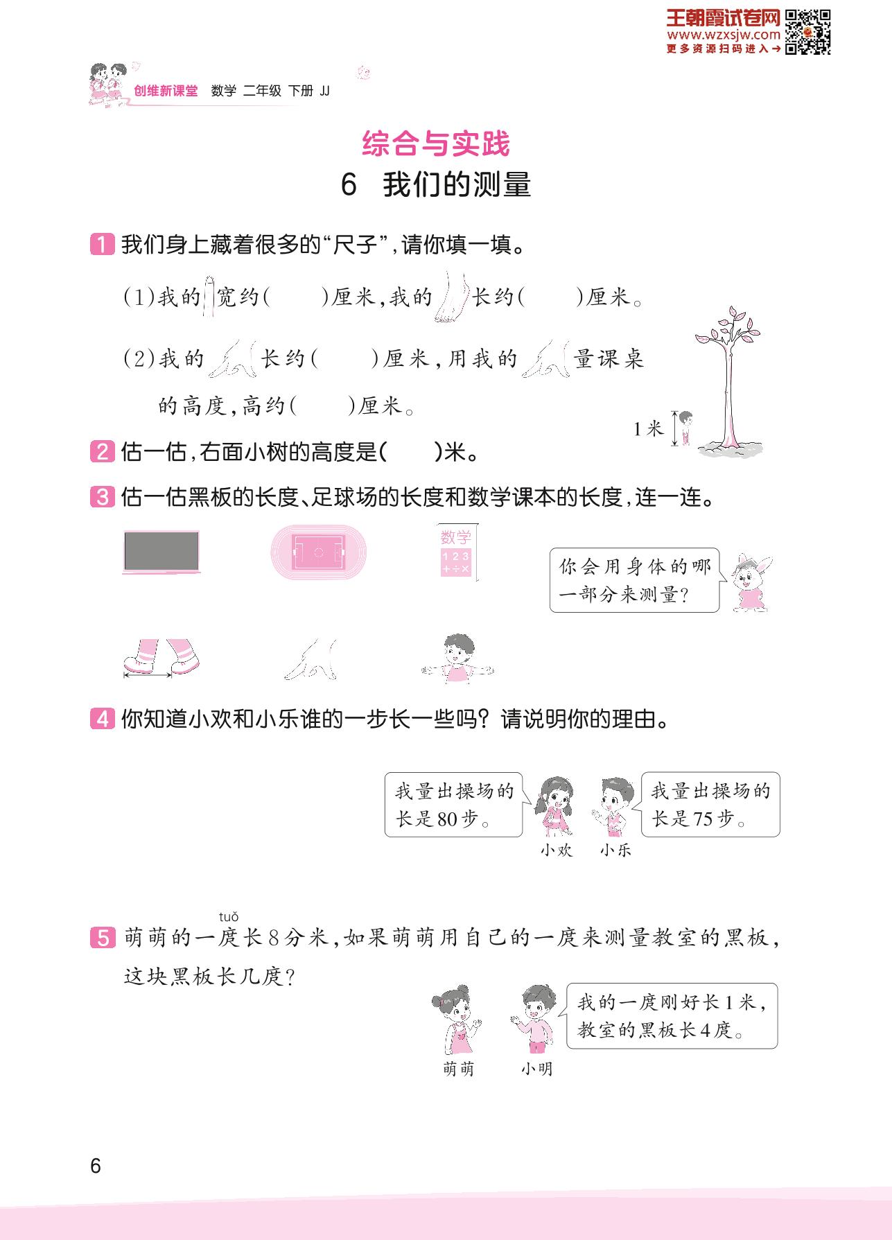 2023下册二年级数学冀教版 一 厘米、分米、米——6 我们的测量