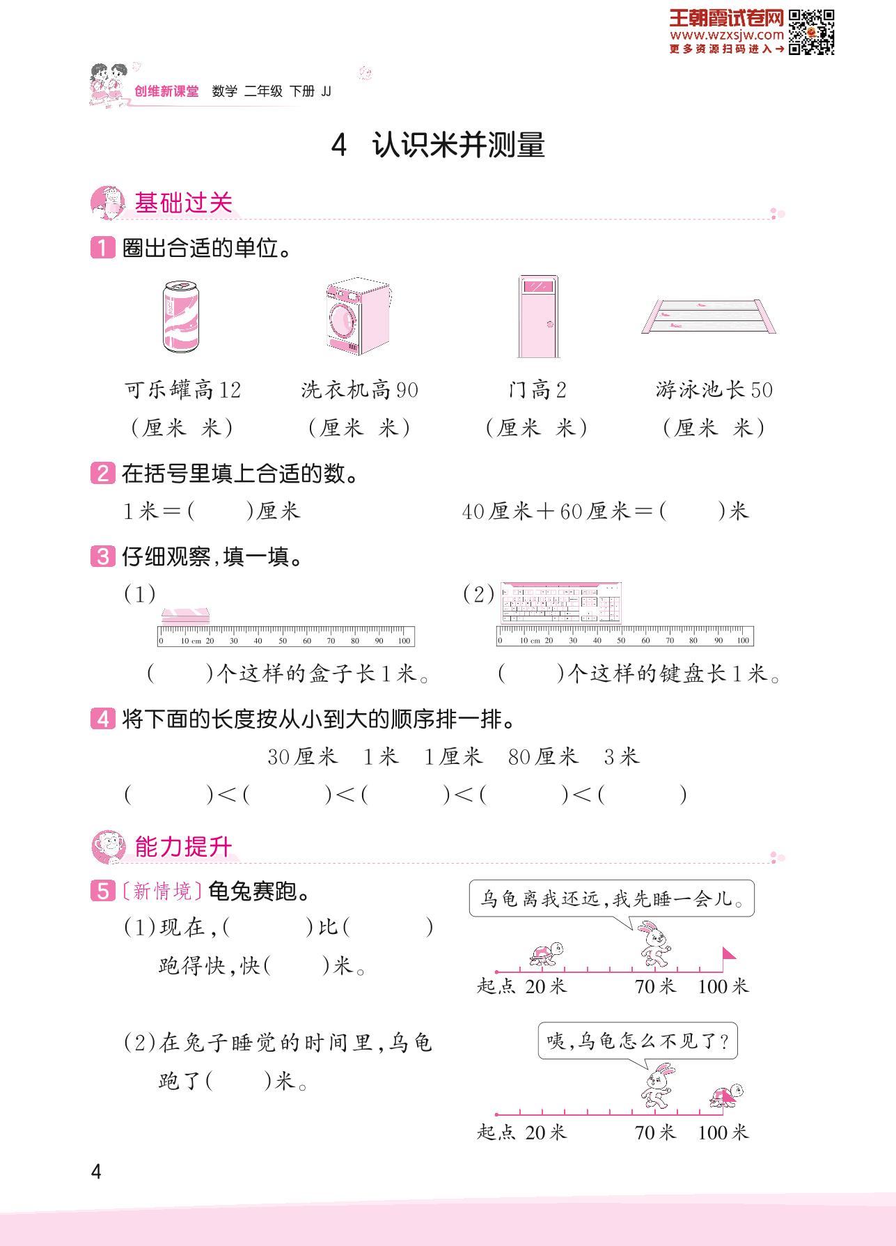 2023下册二年级数学冀教版 一 厘米、分米、米——4 认识米并测量