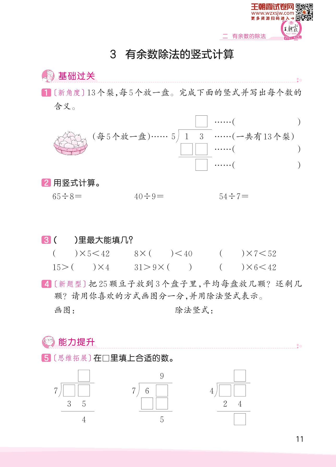 2023下册二年级数学冀教版 二 有余数的除法——3 有余数除法的竖式计算