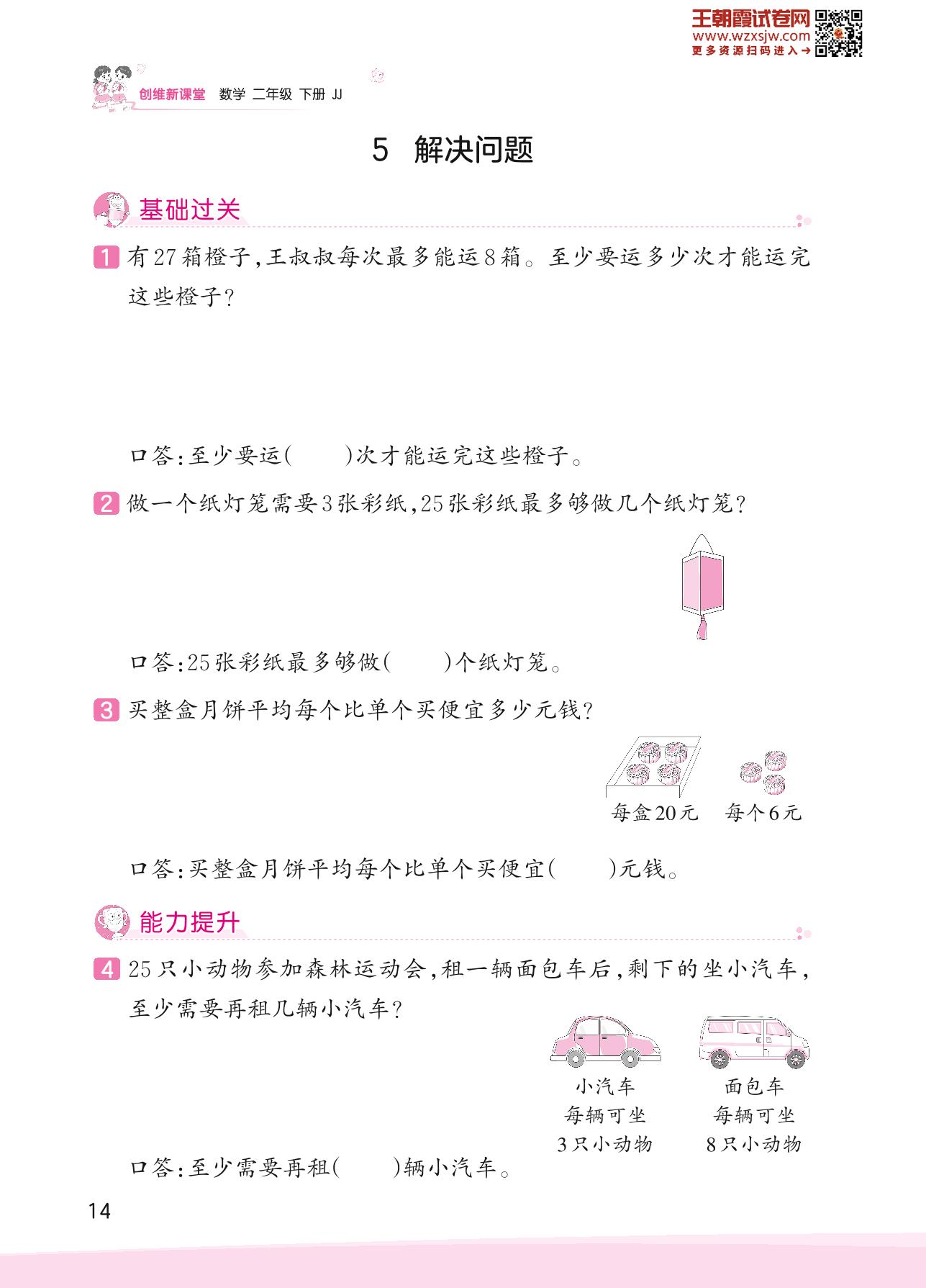 2023下册二年级数学冀教版 二 有余数的除法——5 解决问题