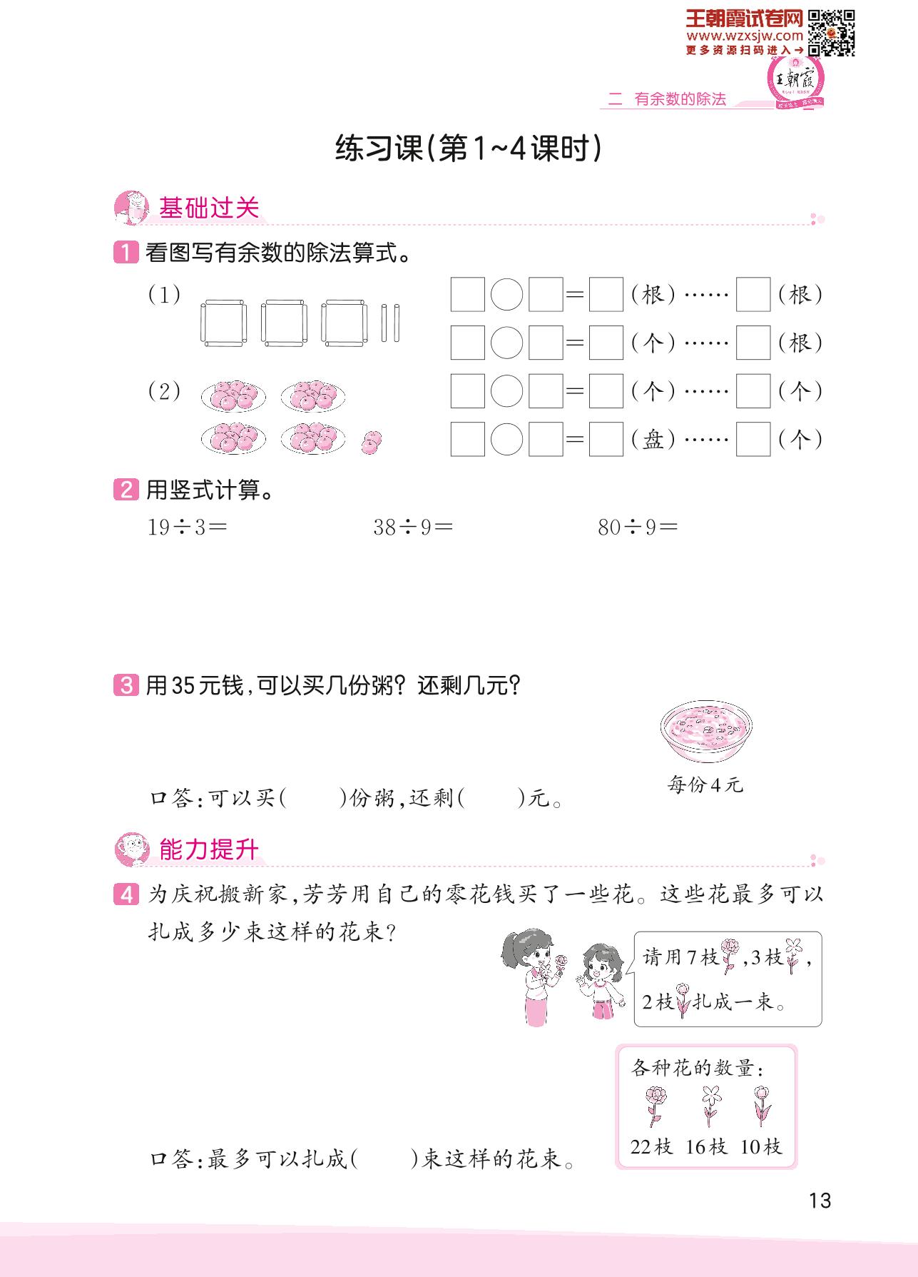2023下册二年级数学冀教版 二 有余数的除法——练习课(第1~4课时)